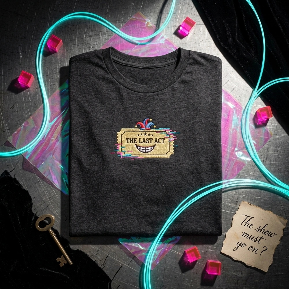 This design is inspired by “The Last Act” of the Amazing Digital Circus. It combines the vintage theater ticket motif with character-specific elements like Pomni’s jester hat and Caine’s teeth barcode to represent the feeling of being trapped in the digital realm.