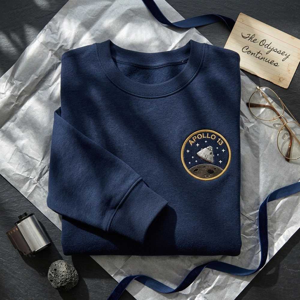 Relive the awe-inspiring moment of the 1970 lunar orbit with this meticulously crafted piece of vintage space apparel. Designed for those who appreciate the 1970s aesthetic and the grit of the space race, this garment serves as a wearable tribute to the historic milestone of human exploration. Whether you are an aerospace engineer or a casual stargazer, this design brings a sense of nostalgia and wonder to your wardrobe. Browse more embroidered sweatshirts in our collection to find your next favorite piece of history.