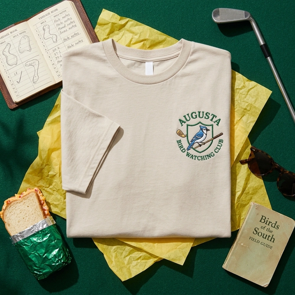 This design is a playful nod to the viral bird-themed apparel worn by Jason Day during the Masters. It serves as an ironic “bird watching club” crest for fans who enjoyed the social media buzz surrounding that specific tournament look.