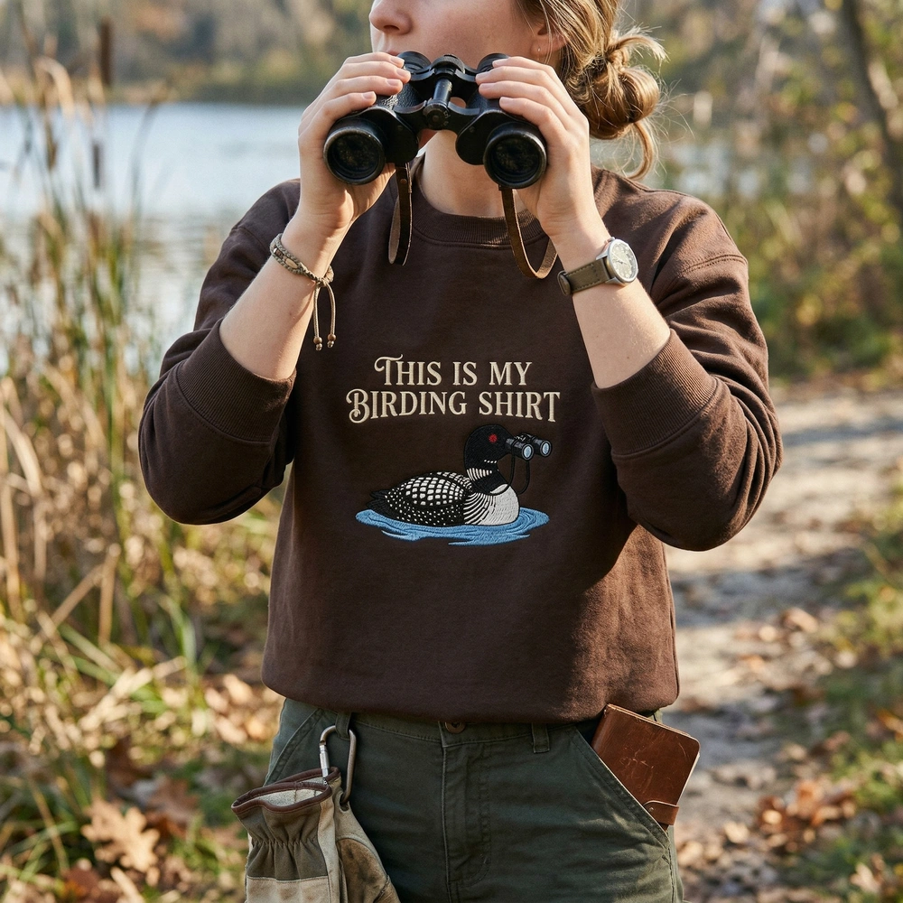 Whether you are deep in the woods or enjoying a quiet morning on the lake, our birding apparel brings a touch of literal humor to your favorite hobby. This design captures the quirky spirit of the birding community, making it an essential piece for those who take their binocular game seriously. Browse more embroidered sweatshirts in our collection to find your next favorite trail-ready look.