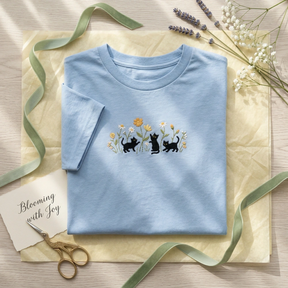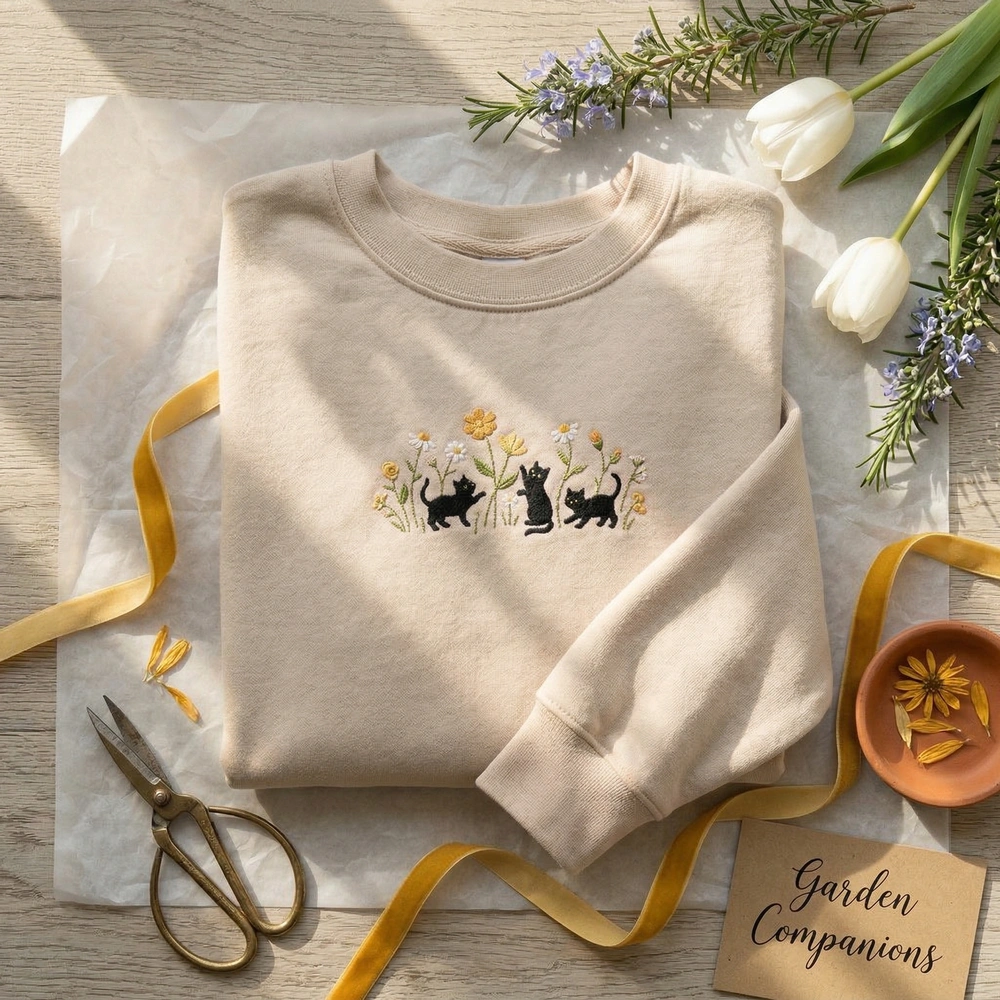 Capture the playful spirit of your favorite feline friends with this cozy, nature-inspired piece. Whether you are a proud cat mom or a lover of the botanical aesthetic, this cat sweatshirt blends minimalist line art with whimsical charm. It is the perfect addition to any wardrobe for those who appreciate the ‘void cat’ subculture and the serenity of a spring garden. Browse more embroidered sweatshirts in our collection to find your next favorite piece.