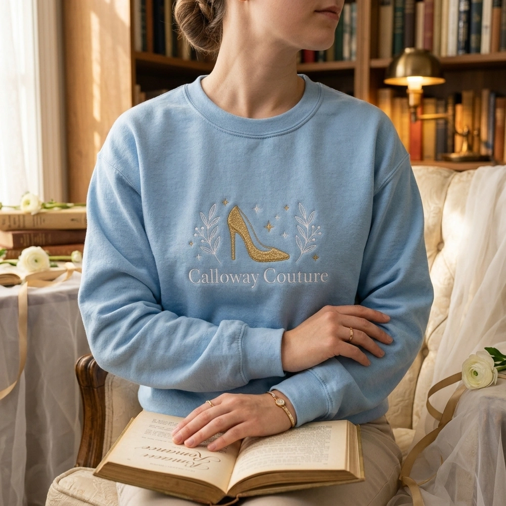 Channel your inner fashion mogul and celebrate your favorite romance series with the Calloway Couture Bookish Embroidered Sweatshirt. Designed specifically for avid readers and BookTok enthusiasts, this cozy light blue crewneck offers a subtle, sophisticated way to rep a beloved fictional fashion line while staying effortlessly stylish.