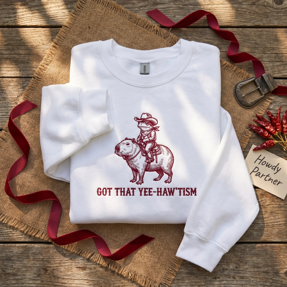 Combining neurodivergent pride with absurd internet humor, this design is perfect for those who embrace their unique perspective with a touch of western flair. Whether you are looking for a yeehaw autism shirt or a conversation-starting neurospicy western wear piece, this high-quality garment delivers both comfort and character. Browse more embroidered sweatshirts | funny sweatshirt options in our collection to find your next favorite look.