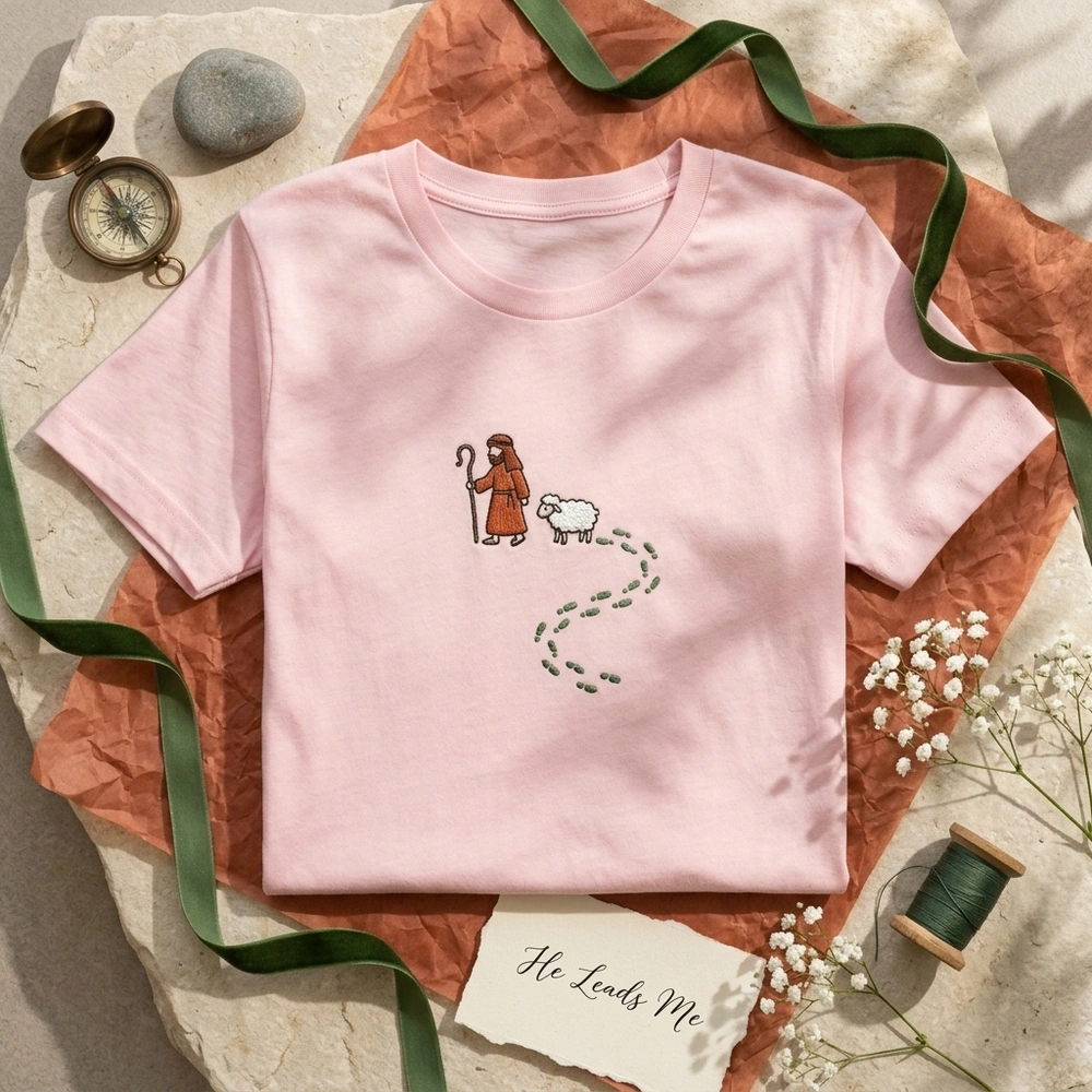 This embroidery is inspired by the imagery of Jesus as “The Good Shepherd” from John 10 and the comforting verses of Psalm 23, symbolizing guidance, protection, and the promise that we never walk alone.
