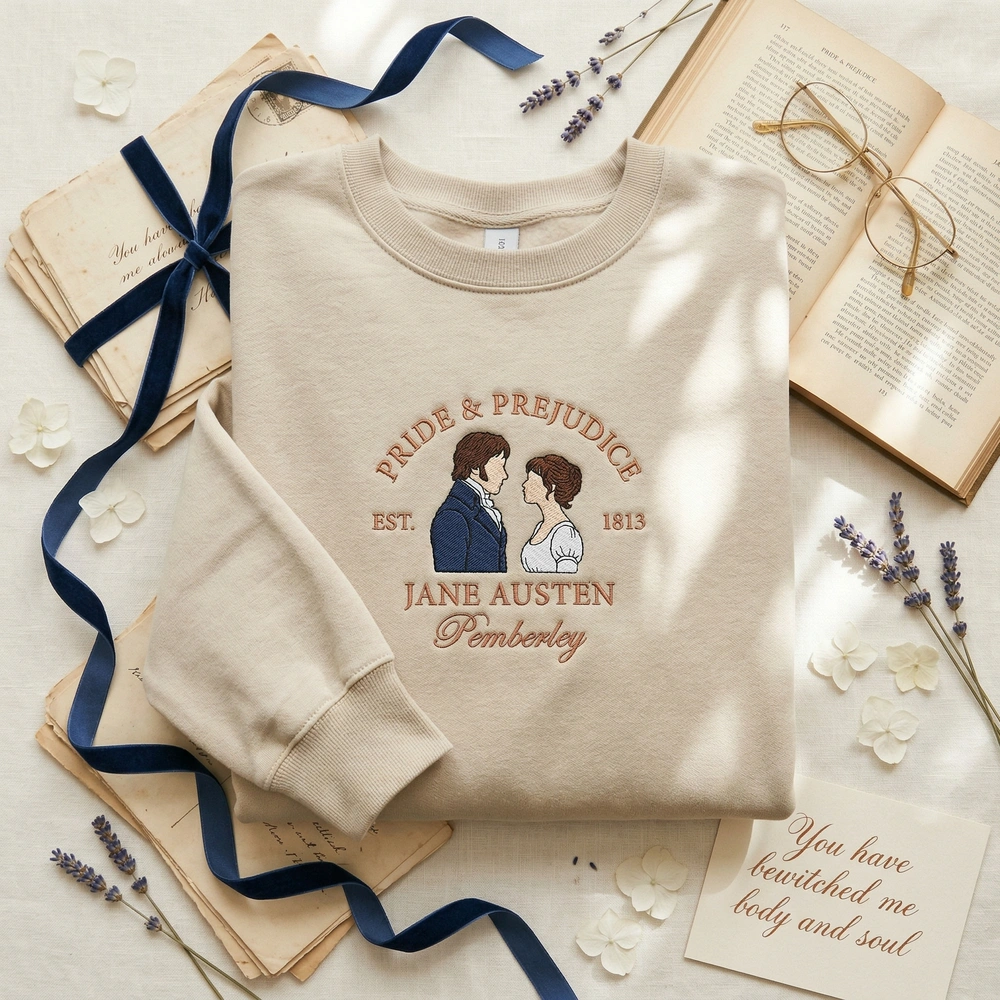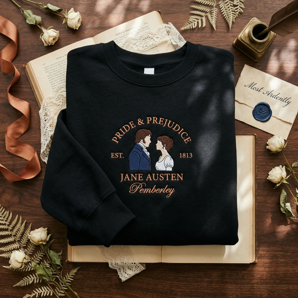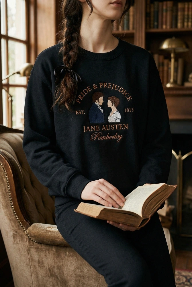 Celebrate the ultimate romantic tension of the 19th century with this premium embroidered piece. Designed for the BookTok community and Dark Academia enthusiasts, this sweatshirt offers a ‘quiet luxury’ alternative to standard printed merch. It feels like wearing a first-edition masterpiece, making it a staple for any literary wardrobe. Browse more embroidered sweatshirts | bookish sweatshirt in our collection to find your next favorite read.