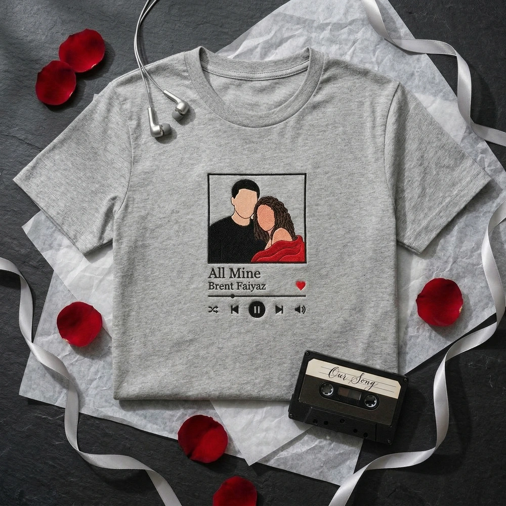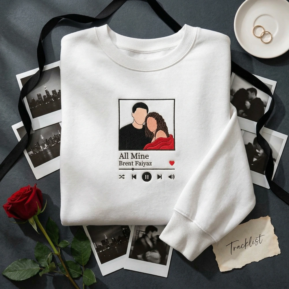 Turn your most cherished memory into a wearable work of art. This custom couple portrait design captures the essence of your favorite relationship through a minimalist line-art aesthetic, framed within a sleek music player interface. Whether it is a song that defined your first date or a track that always reminds you of home, this piece serves as a sophisticated and sentimental tribute. Browse more embroidered sweatshirts | couple sweatshirt options in our collection to find your perfect match.