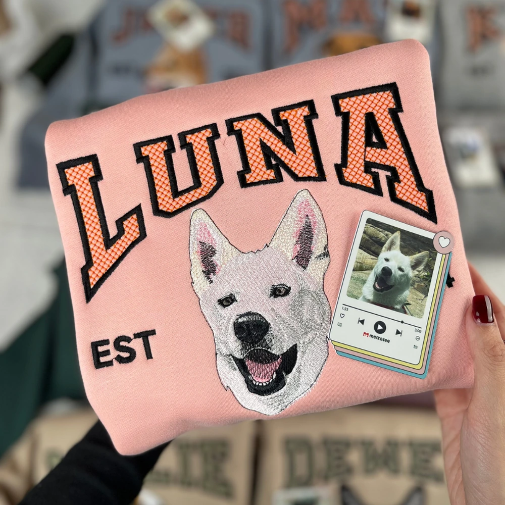 Transform your favorite photo into a wearable keepsake with a custom embroidered dog sweatshirt. The perfect dog mom gift for everyday comfort and style.