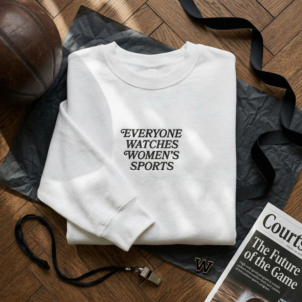 The Everyone Watches Women’s Sports Embroidered Sweatshirt is a premium varsity-style top featuring the viral 2026 sports slogan for WNBA and NWSL fans.