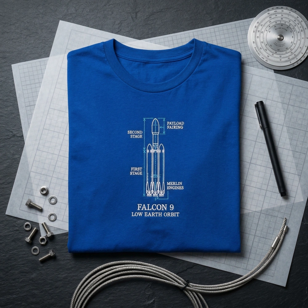 Absolutely. We use professional-grade polyester threads that are colorfast and resistant to fraying, ensuring the fine technical lines of the rocket schematic remain crisp through many wash cycles.