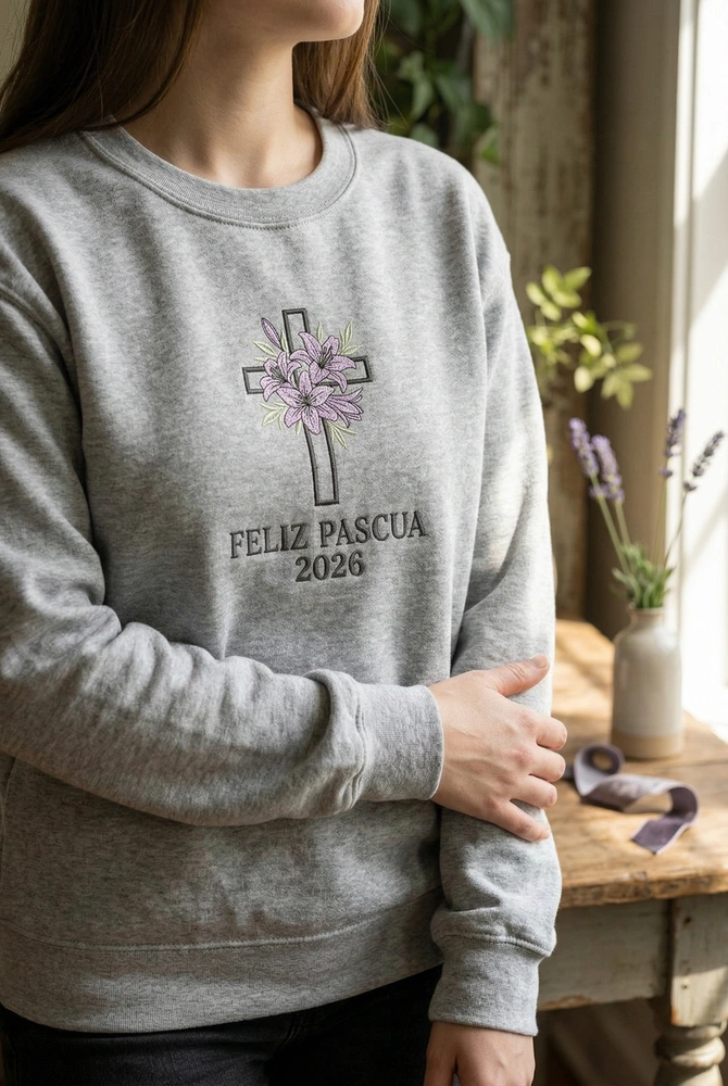 Celebrate your faith and heritage with a design that blends tradition and modern style. This sweatshirt is crafted for Hispanic Christian families who want to honor Semana Santa and Easter Sunday with premium, meaningful apparel. Whether you are attending a sunrise service or hosting a family brunch, this garment serves as a beautiful testament to your spiritual journey. Browse more embroidered sweatshirts in our collection to find the perfect match for your spring wardrobe.