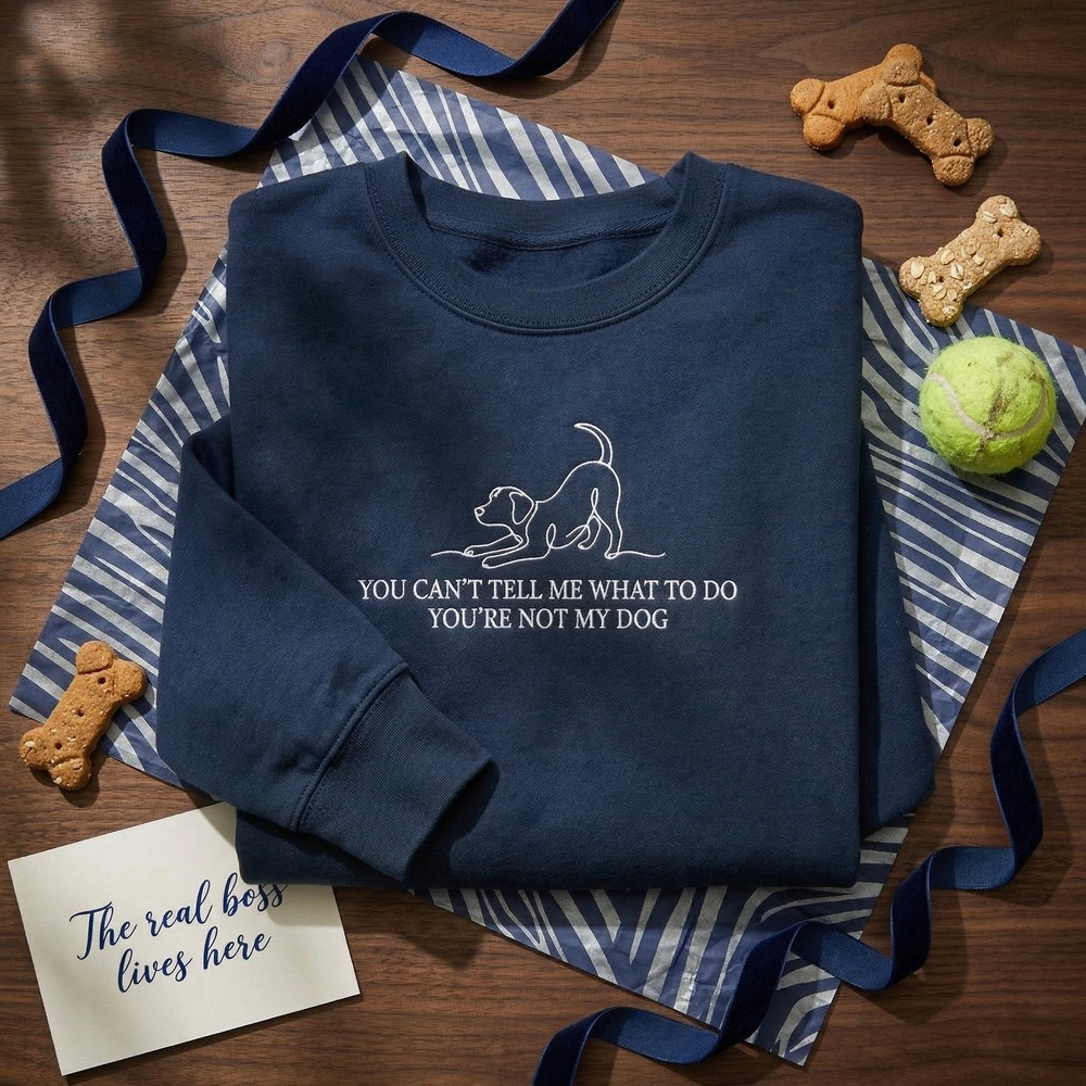 Designed for the pet parent who takes orders from no one except their four-legged best friend, this sarcastic pet owner shirt captures that dry, witty humor perfectly. Whether you are a tired dog mom or a sarcastic animal lover, this high-quality military green crewneck is your new favorite layer for the dog park or casual outings. Browse more embroidered sweatshirts | funny sweatshirt in our collection to find your next statement piece.