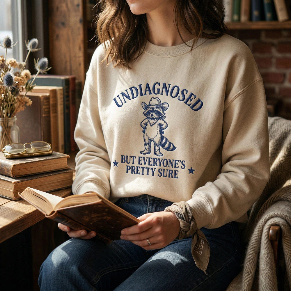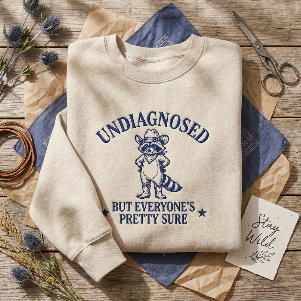 Embrace your chaotic energy with this hilarious and relatable piece of apparel. Designed for those who identify with the ‘trash panda’ lifestyle, this sweatshirt combines internet culture with a high-quality western aesthetic. Whether you are looking for a funny sweatshirt to wear to your next therapy session or just want to spark a conversation at the coffee shop, this design hits the mark. It is the perfect embroidered sweatshirt for anyone who appreciates the intersection of mental health humor and vintage illustration styles.