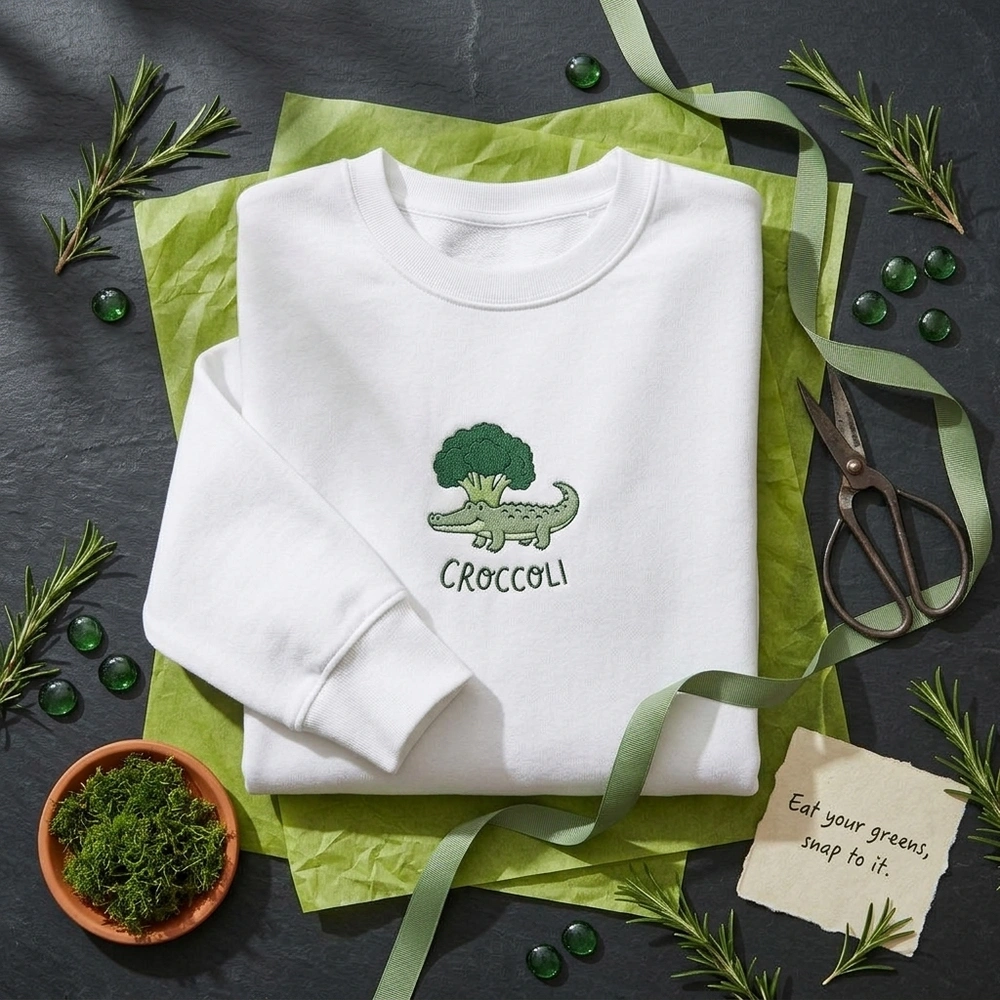 The Croccoli Pun Embroidered Sweatshirt Design Details