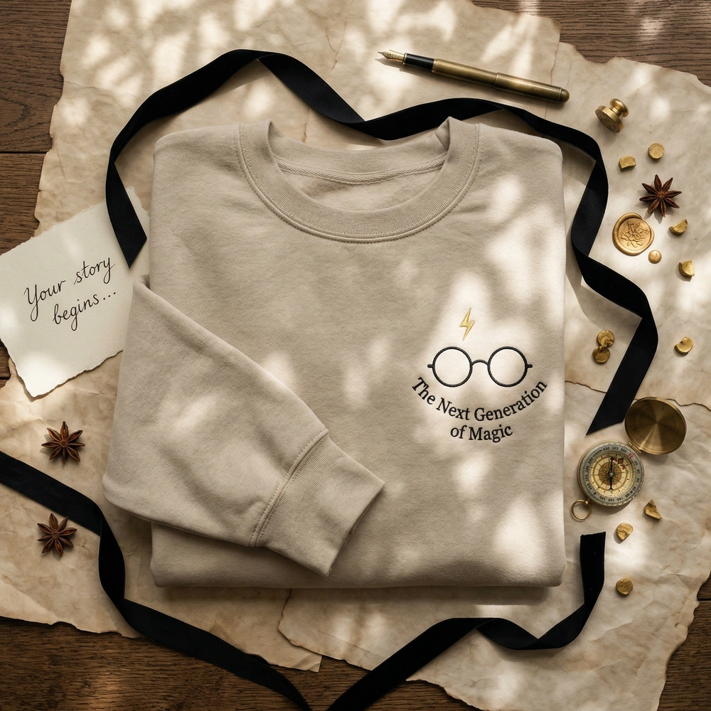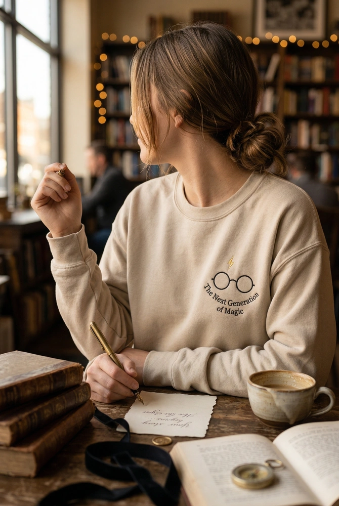 Step into the next generation of magic with a design that speaks to those who know. This isn’t just a piece of fan gear; it’s a sophisticated nod to the wizarding world reboot. Crafted for the aesthetic-driven bookworm, this top offers a “stealth geek” vibe that looks just as good in a high-end coffee shop as it does during a midnight premiere. Browse more embroidered sweatshirts in our collection to find your perfect fit.