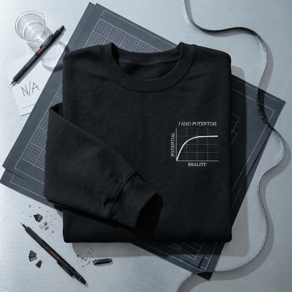 The I Had Potential Embroidered Sweatshirt is a premium machine-embroidered top featuring a technical failure chart for introverted STEM nerds.