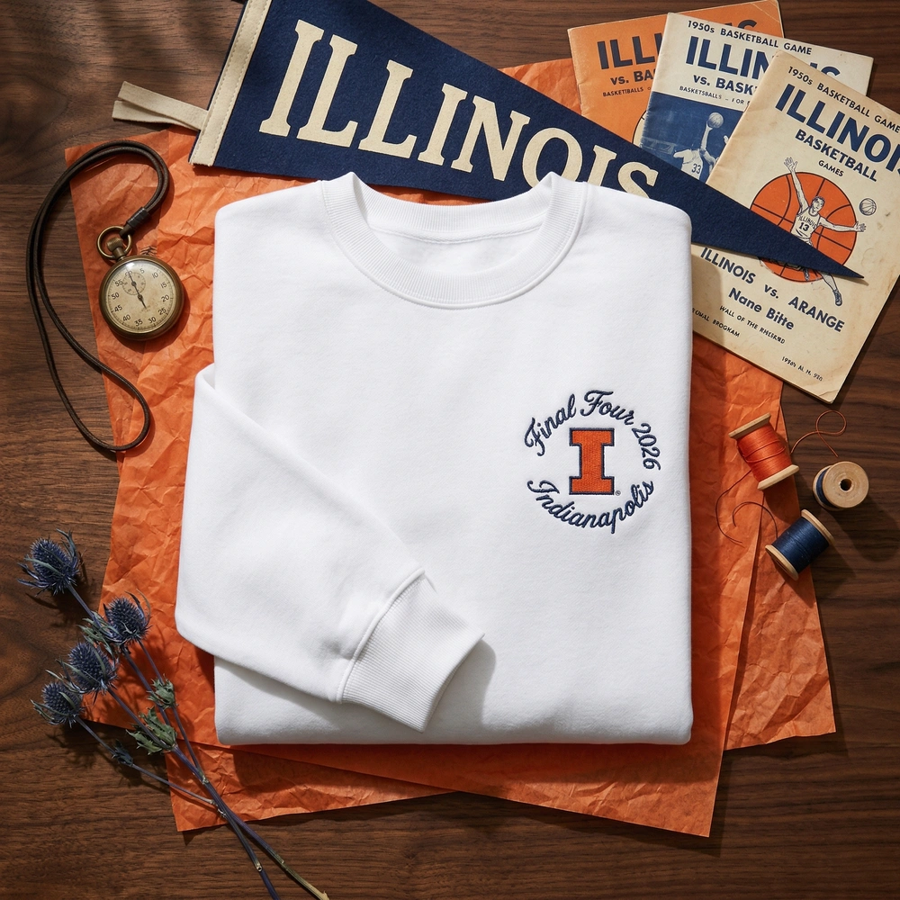 Celebrate a historic milestone in Illinois basketball history with a piece that feels like a true heirloom. This isn’t your standard screen-printed tee; it is a high-quality piece of embroidered sweatshirts gear designed for alumni, students, and die-hard fans who want to remember the road to Indianapolis in style. Whether you are heading to the State Farm Center or cheering from home, this vintage college sports hoodie offers the perfect blend of retro aesthetics and modern comfort. Browse more national park sweatshirt designs and collegiate-inspired apparel in our full collection.