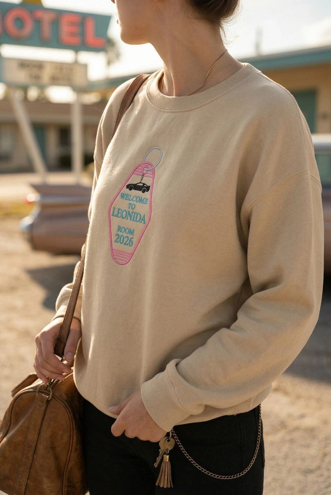 Step into the neon-soaked streets with our Leonida Motel Embroidered Sweatshirt, designed for gamers who appreciate subtle gaming apparel that doubles as high-end streetwear. This isn’t just a garment; it’s an insider’s badge for those ready to explore the next generation of open-world gaming. Whether you are hunting for retro gaming merch or a unique piece of gamer streetwear, this sand-colored sweatshirt captures the 80s retro wave aesthetic perfectly. Browse more embroidered sweatshirts in our collection to find your next favorite piece of fan gear.