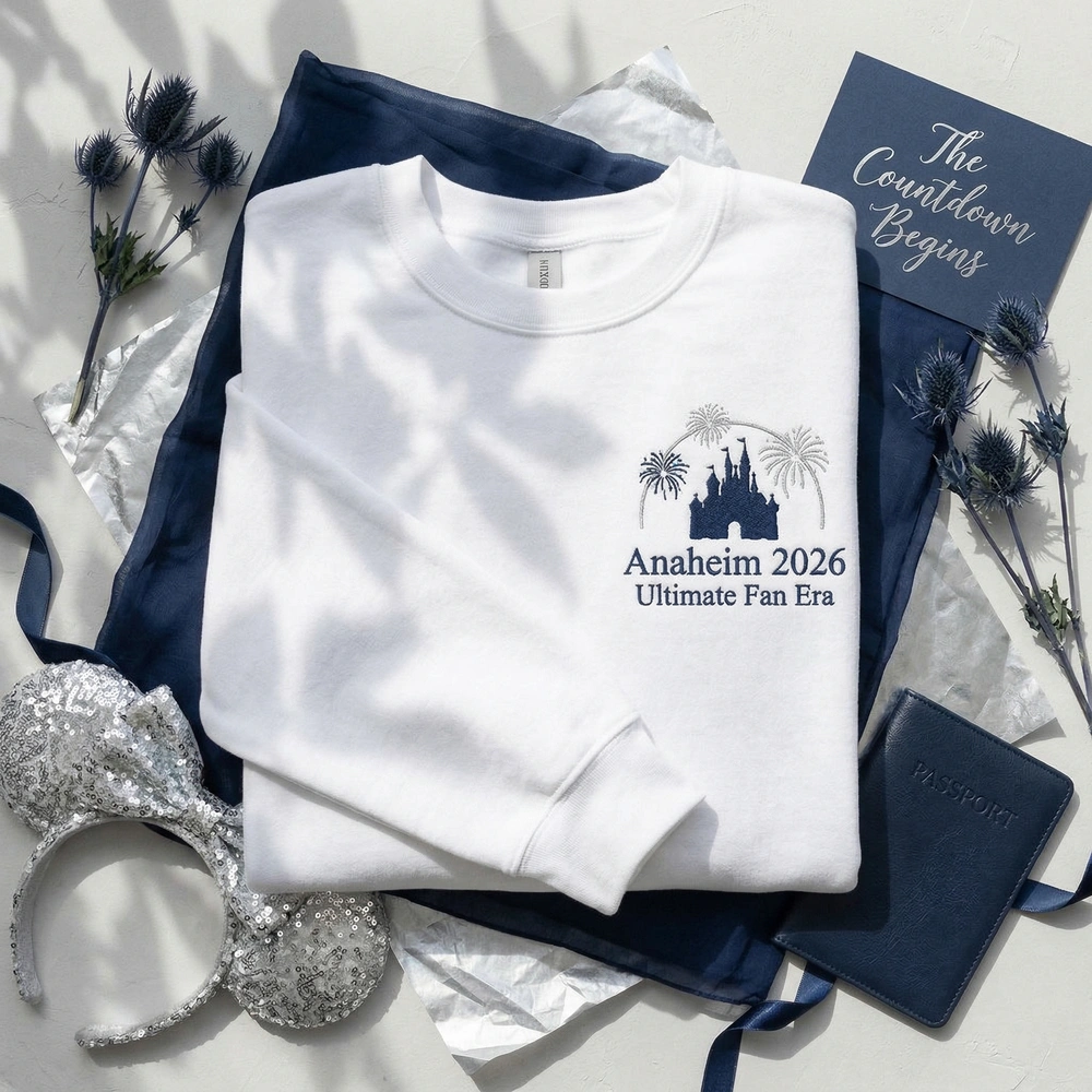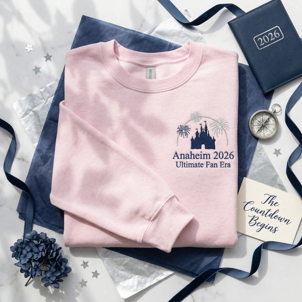 Prepare for the ultimate celebration in California with this sophisticated, event-specific piece. Whether you are navigating the convention floor or enjoying the parks after hours, this design offers a subtle, nostalgic aesthetic that stands out from standard tourist gear. It is the ideal choice for fans who want to commemorate the specific 2026 era without sacrificing style. Browse more embroidered sweatshirts in our collection to find the perfect look for your entire group.