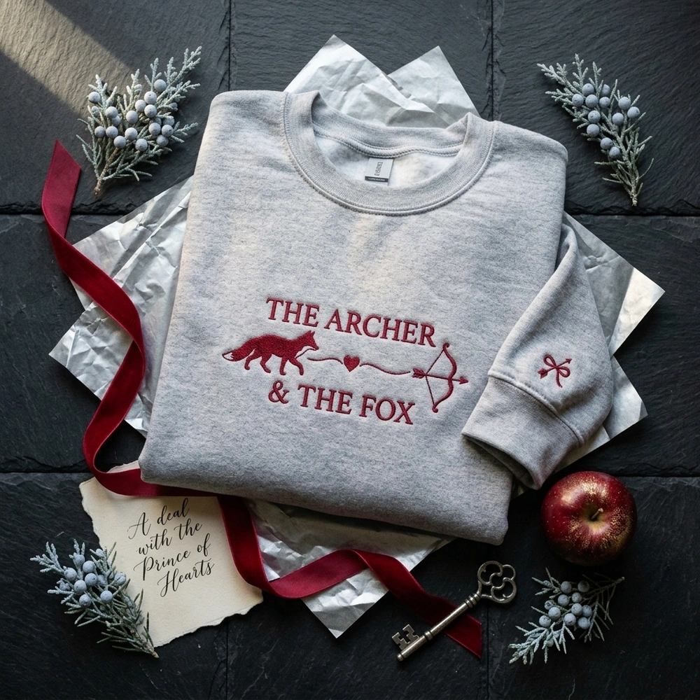 Carry the magic of your favorite star-crossed duo with you wherever you go. This subtle, aesthetic design is a high-end “if you know, you know” tribute to one of the most beloved couples in modern YA fantasy. Whether you’re curled up with a new release or heading to a bookish meetup, this garment offers a sophisticated way to showcase your fandom. Browse more embroidered sweatshirts | bookish sweatshirt options in our collection.