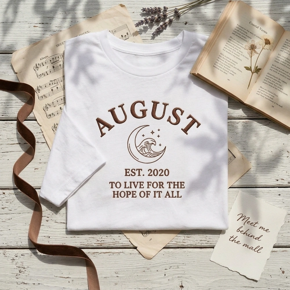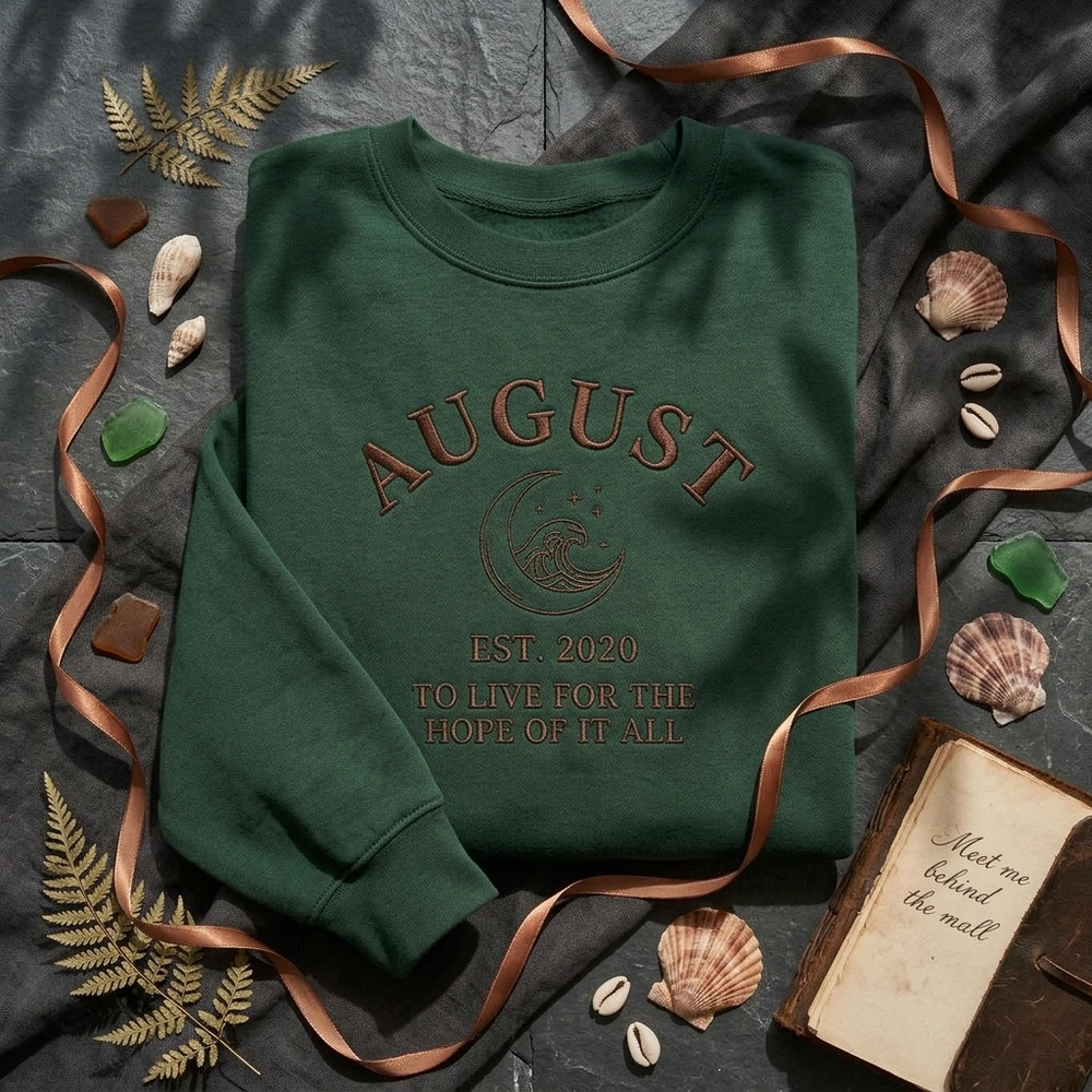 Carry the nostalgic, bittersweet essence of summer and a beloved indie-folk era with you in this elegantly understated piece. Perfect for those who appreciate the “sad girl autumn” aesthetic or minimalist cottagecore style, this design captures the feeling of living for the hope of it all. Whether you are heading to a concert or curling up with a book, this high-quality garment is a must-have for any dedicated music fan. Browse more embroidered sweatshirts | fan-inspired apparel in our collection.