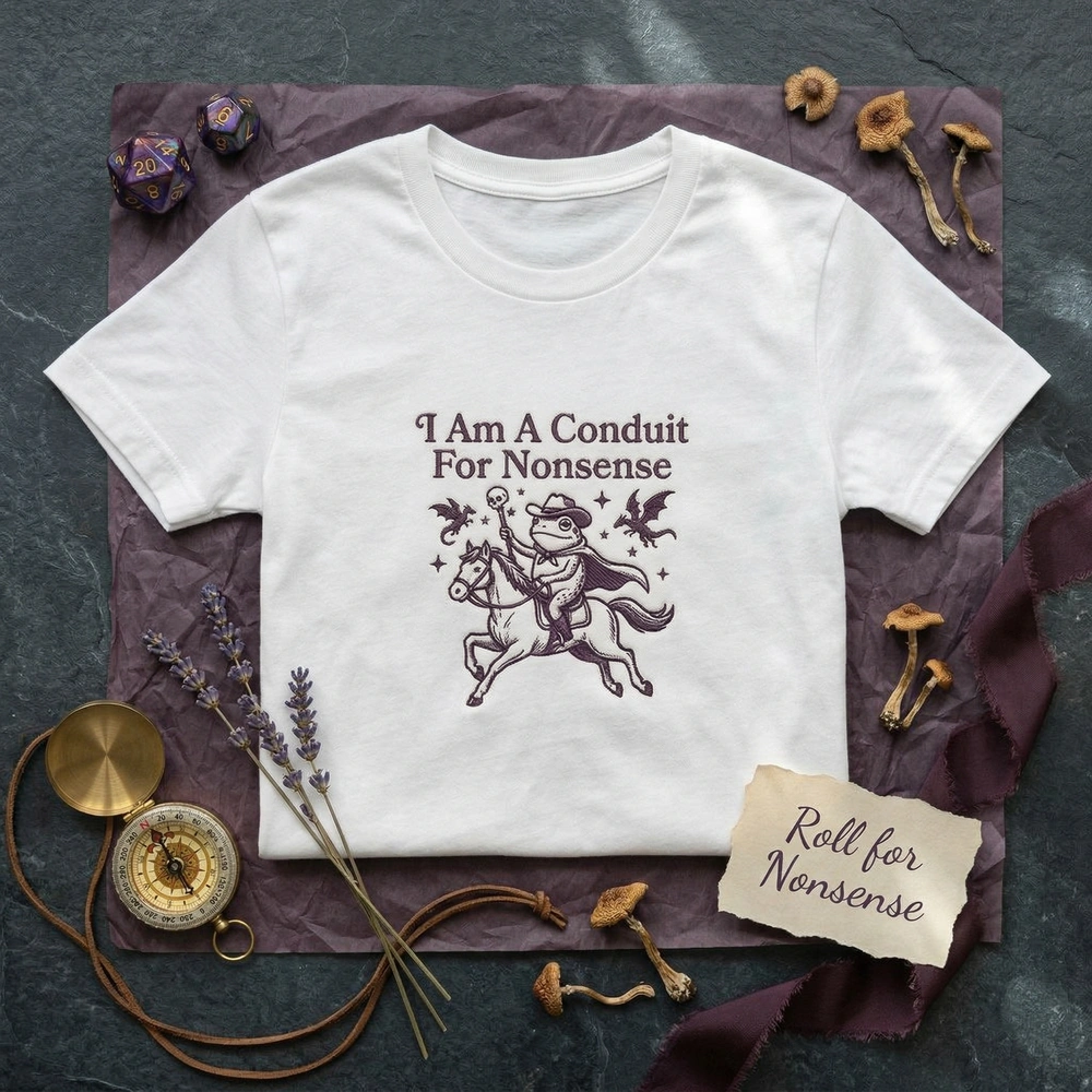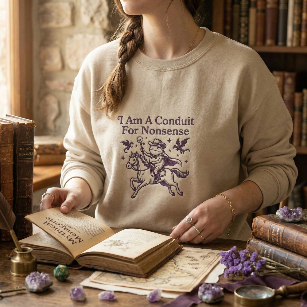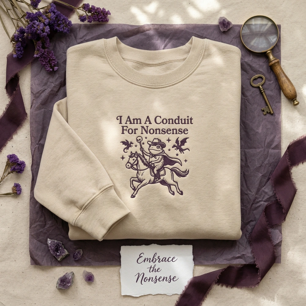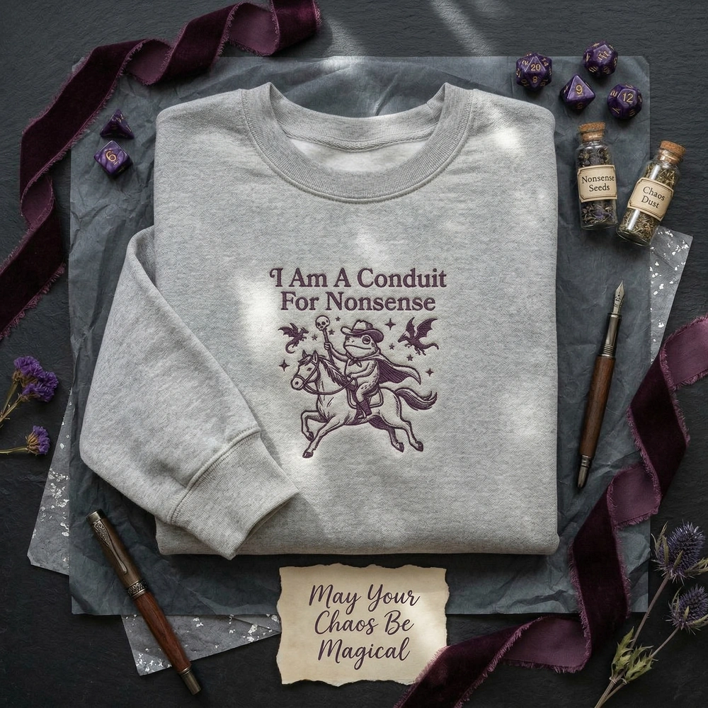 Embrace your inner chaos with a design that perfectly captures the absurdity of internet humor and high-fantasy adventure. Whether you are a dedicated D&D player or someone who simply identifies as a “conduit for nonsense,” this piece is designed to spark conversation and showcase your unique personality. Browse more embroidered sweatshirts or find your next favorite funny sweatshirt in our curated collection.
