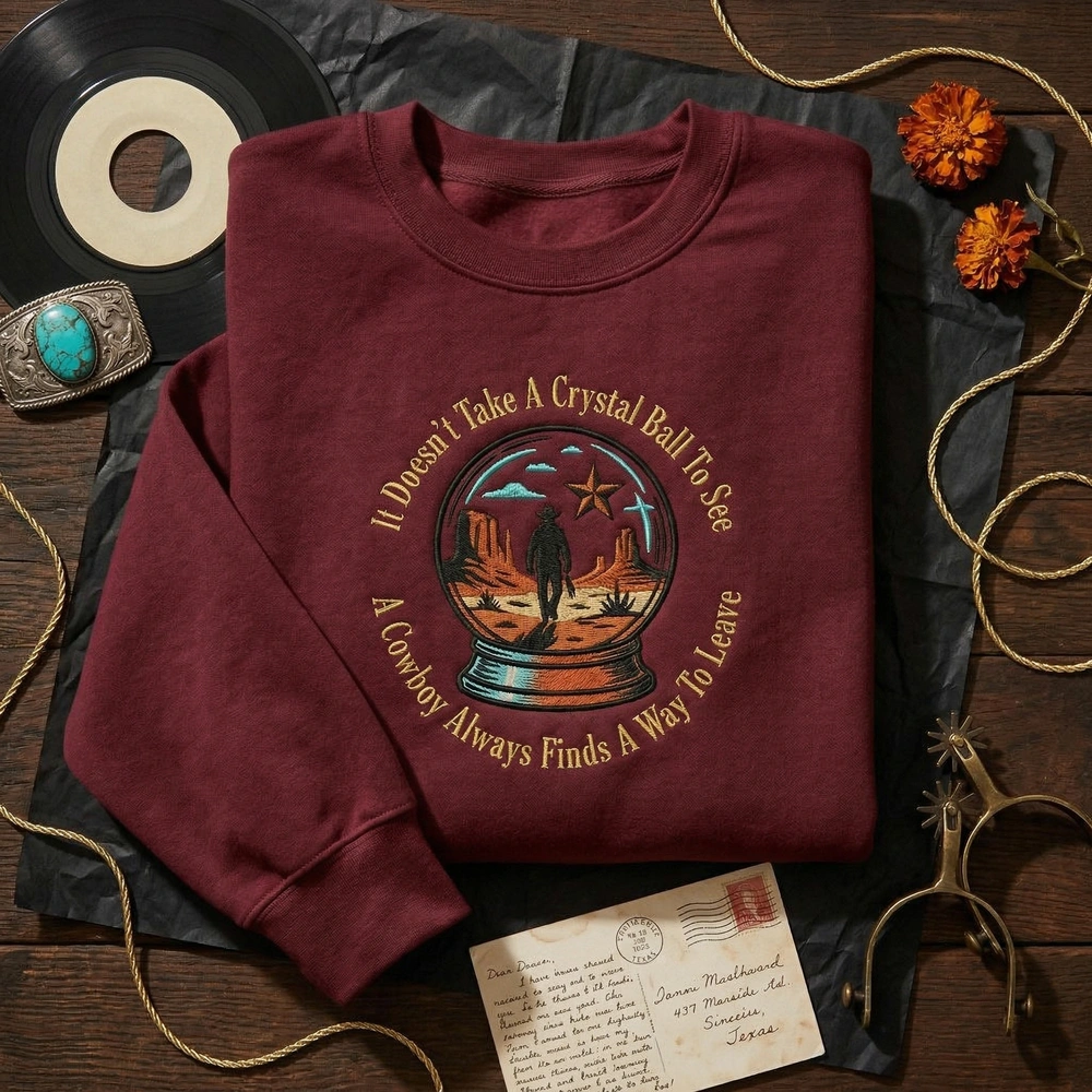 This design is an original artistic interpretation of the heartbreaking themes found in modern country music, specifically referencing the “cowboy always finds a way to leave” sentiment made popular by recent hits. It’s designed for fans who love the storytelling side of country music.