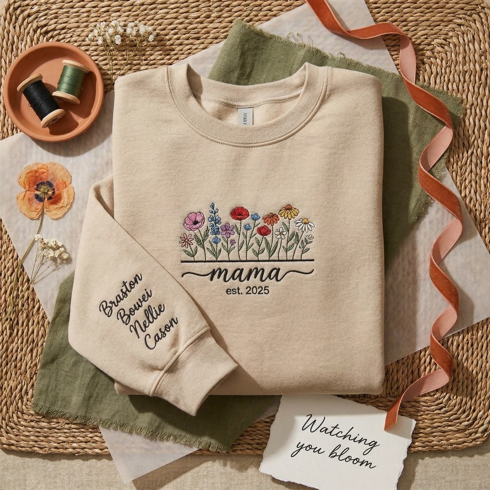 Celebrate the beauty of motherhood with a garment that is as unique as your family. This isn’t just a piece of apparel; it’s a wearable garden that keeps your loved ones close to your heart. Designed for mothers, grandmothers, and expecting moms, our wildflower collection blends sophisticated botanical art with the sentimental touch of personalization. Whether you are treating yourself or searching for the perfect Mother’s Day gift, this custom mama sweatshirt offers a timeless aesthetic that celebrates your most important title.