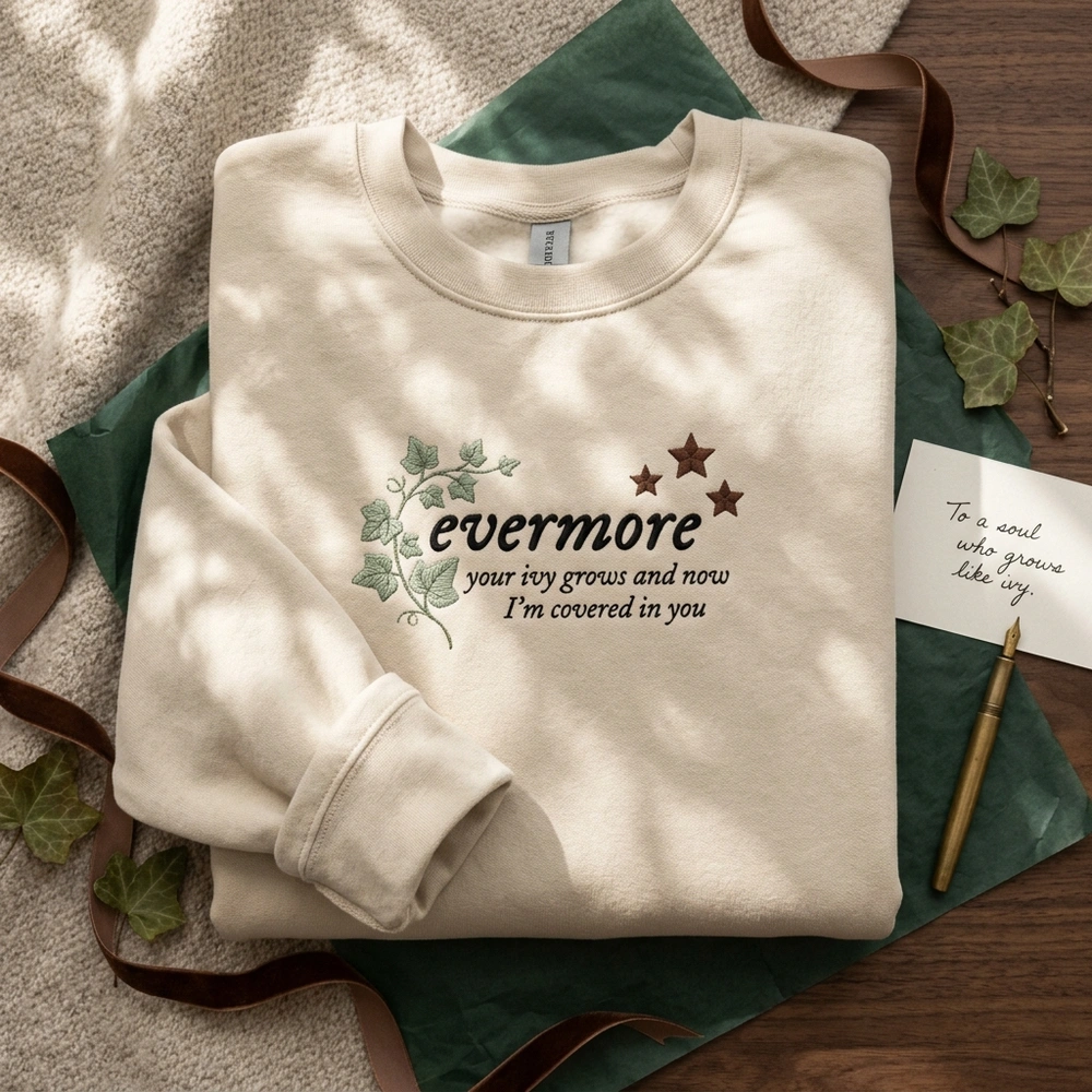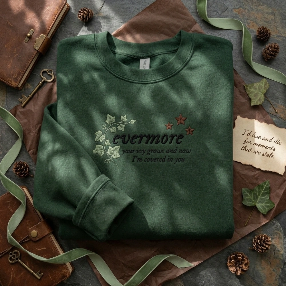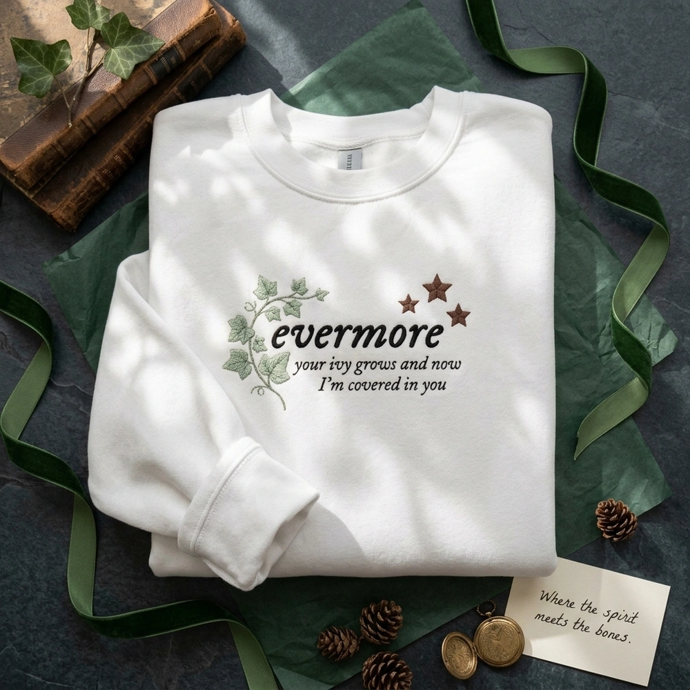 Embrace the hauntingly beautiful essence of your favorite indie-folk era with this wearable piece of poetry. Designed for those who find magic in the woods and solace in a sad song, this piece captures a whimsical, organic aesthetic that resonates with fans of storytelling and deep lyricism. Browse more embroidered sweatshirts | swiftie merch in our collection to find your next favorite staple.