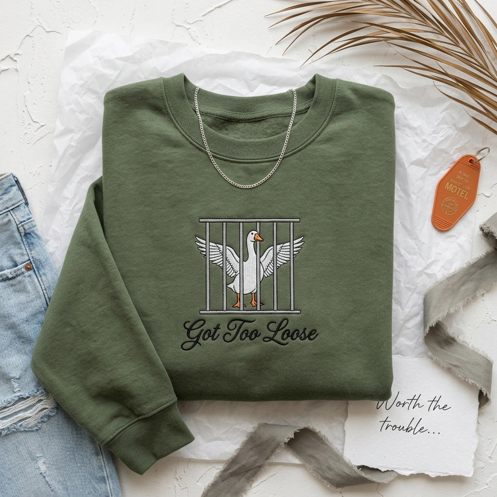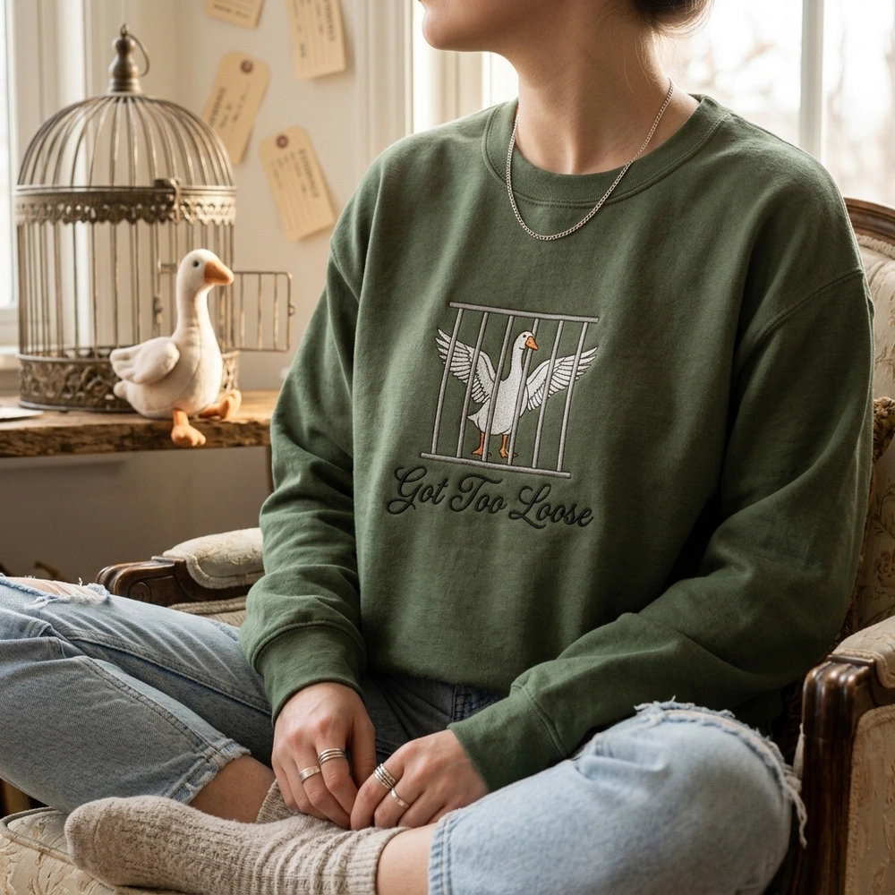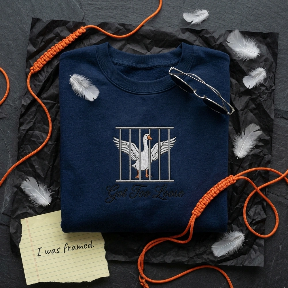 This ironic sweatshirt captures the unhinged energy of modern meme culture, blending high-quality craftsmanship with the absurd “silly goose” aesthetic. Whether you’re navigating the chaos of adulthood or looking for the perfect conversation starter, this piece resonates with anyone who identifies with a goose behind bars. Browse more embroidered sweatshirts or find your next favorite funny sweatshirt in our curated collection of Gen Z humor apparel.