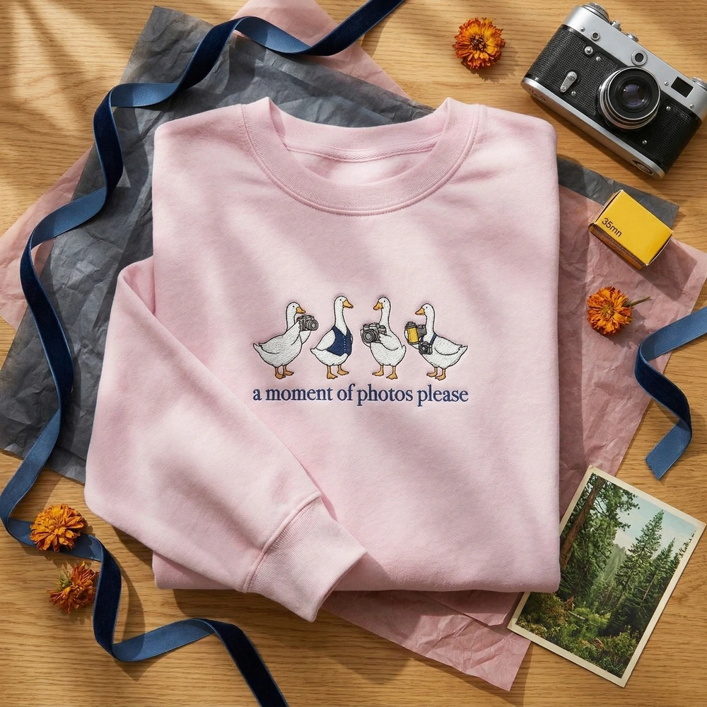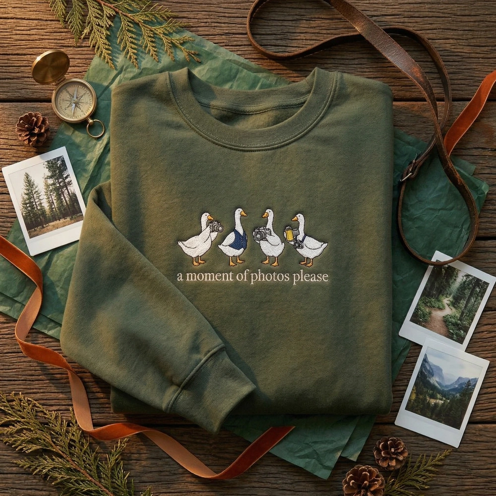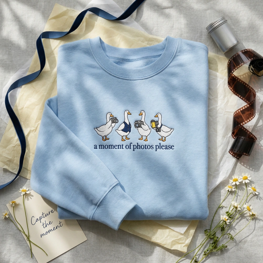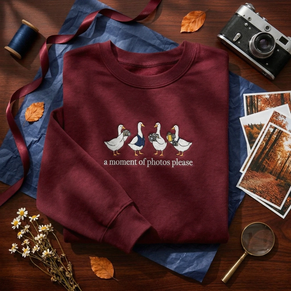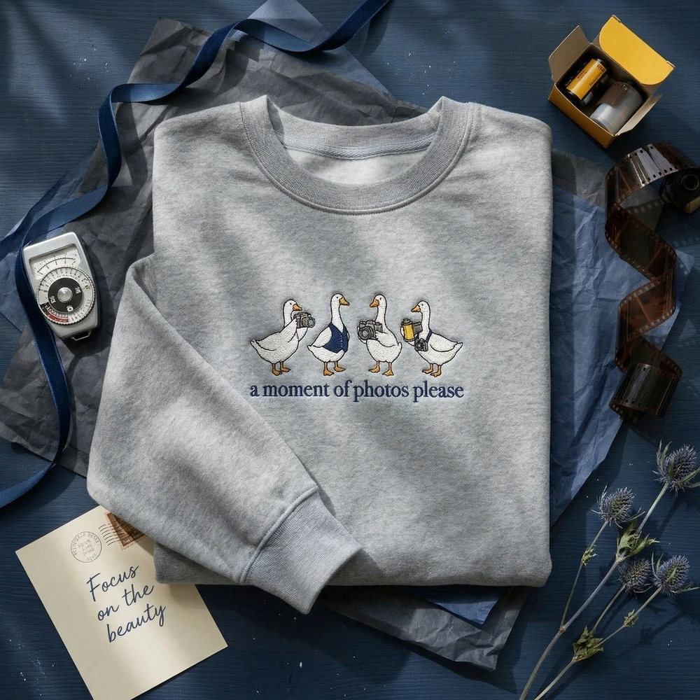 The photographer gift embroidered sweatshirt features a whimsical silly goose photography club design, perfect for camera lovers and hobbyists alike. This premium garment captures the ‘silly goose’ meme aesthetic with high-quality stitching, making it a standout piece for anyone who enjoys a moment of photos.