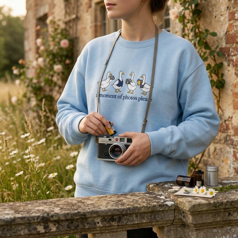Whether you are the designated group photographer or a professional film enthusiast, this sweatshirt is designed to spark conversations. It celebrates the quirky ‘photo dump’ culture of social media while providing the cozy comfort of a high-quality crewneck. Browse more embroidered sweatshirts or find a funny sweatshirt in our full collection to match your unique style. For just $5, you can add a personalized name or quote to the sleeve, making it a truly one-of-a-kind treasure.