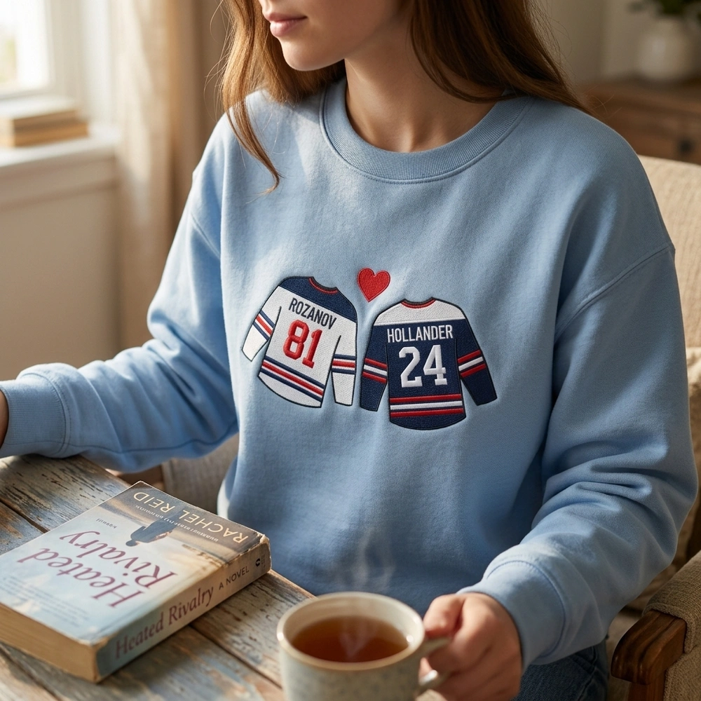 Celebrate the legendary romance of Ilya Rozanov and Shane Hollander with this exquisitely crafted tribute to Rachel Reid’s beloved series. Designed for the dedicated BookTok and Bookstagram community, this light blue sweatshirt offers a subtle yet sophisticated way to wear your fandom. Whether you are curling up with a re-read or heading to the rink, this high-quality piece connects you to the world of professional hockey romance through durable, artistic craftsmanship.