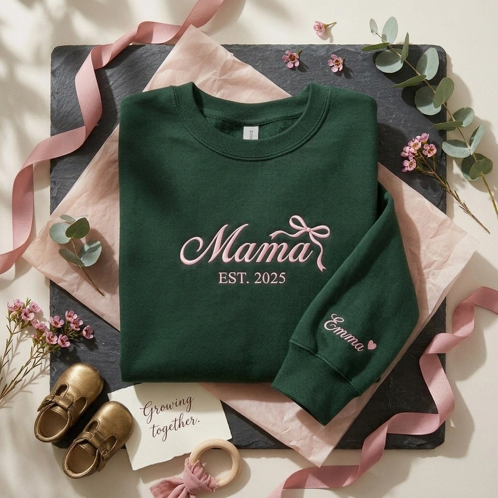 Celebrate the beautiful journey of motherhood with a high-quality, handcrafted keepsake designed to last a lifetime. Whether you are searching for the perfect baby shower gift or a treat for yourself as a new mother, this personalized mama sweatshirt creates an emotional connection by keeping your little one’s name right on your sleeve. The combination of modern script and timeless ribbon details makes this a standout piece in any boutique wardrobe.
