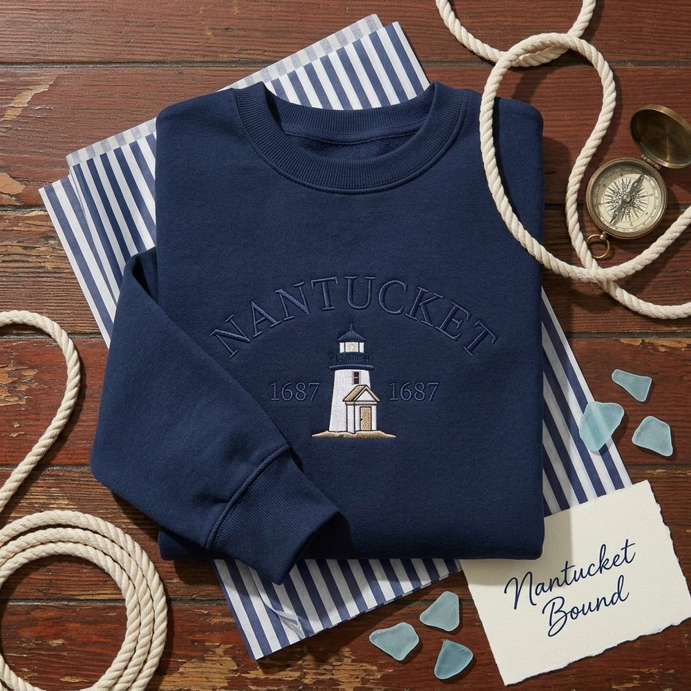 Capture the timeless charm of the Massachusetts coast with this meticulously handcrafted piece. Whether you are a lifelong New England resident, a frequent visitor to the Cape, or an enthusiast of preppy, nautical fashion, this sweatshirt serves as a high-quality keepsake that evokes the salty air and heritage of Nantucket. Designed for durability and style, it’s more than just apparel; it’s a wearable memory of the Atlantic shore.