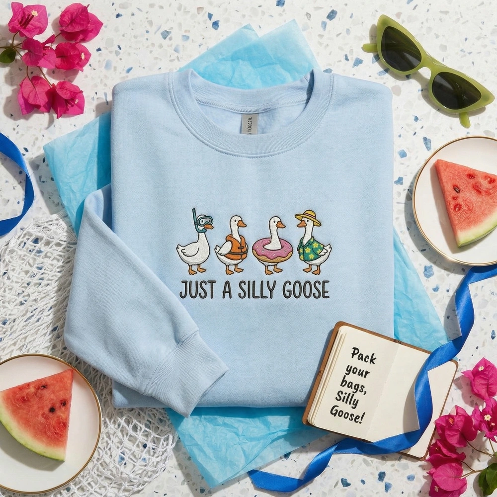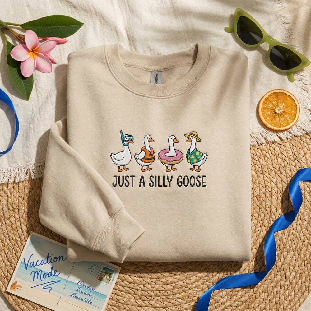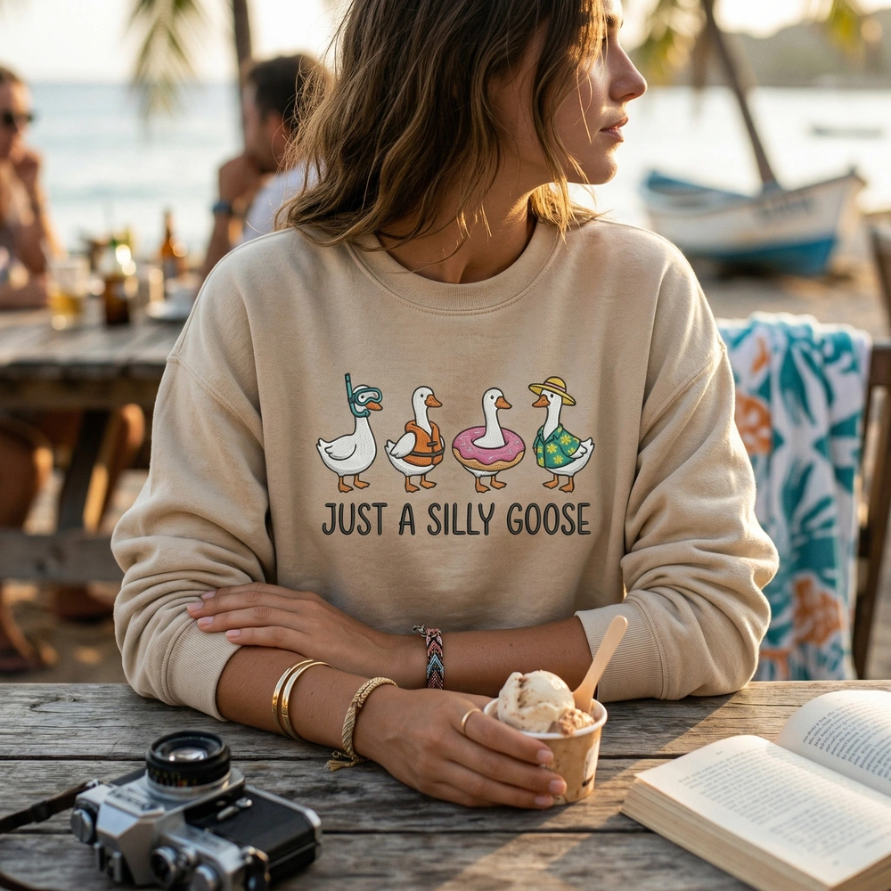 This sweatshirt is an ideal choice for: Best friends who share ‘silly goose’ memes, beach vacation group outfits, animal lovers with a sense of humor, birthday gifts for Gen Z siblings, or as a personalized treat for yourself. The custom sleeve option makes it a thoughtful, one-of-a-kind keepsake.