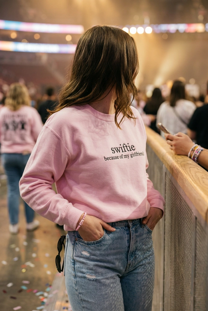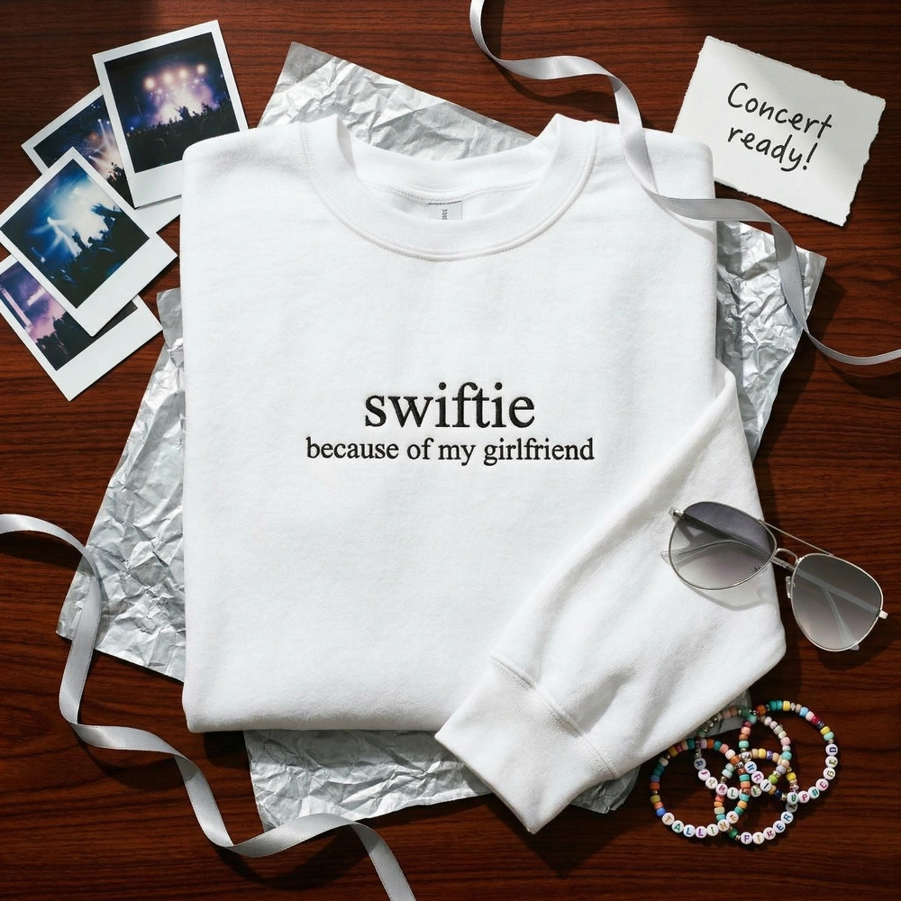 Whether you are heading to the Eras Tour or just showing support for your partner’s favorite artist, this sweatshirt is the ultimate emotional hook for any supportive boyfriend or husband. It’s more than just a piece of merch; it’s a humorous and endearing statement that celebrates your relationship and her fandom. Crafted with high-density machine embroidery, this custom Swiftie sweatshirt for men provides a sophisticated alternative to basic printed shirts, ensuring you look sharp while being the ultimate ‘Swiftie-by-association.’