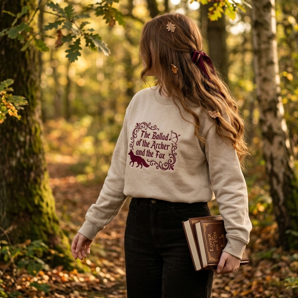 Step into the world of your favorite romantic fantasy with this exquisitely detailed piece of bookish apparel. Designed specifically for fans of epic tales and whimsical lore, this sweatshirt bridges the gap between cozy loungewear and high-end fan merchandise. Whether you are curling up with a new release or heading to a bookish meetup, this sand-colored crewneck offers a subtle yet striking way to showcase your passion for the archer and the fox.