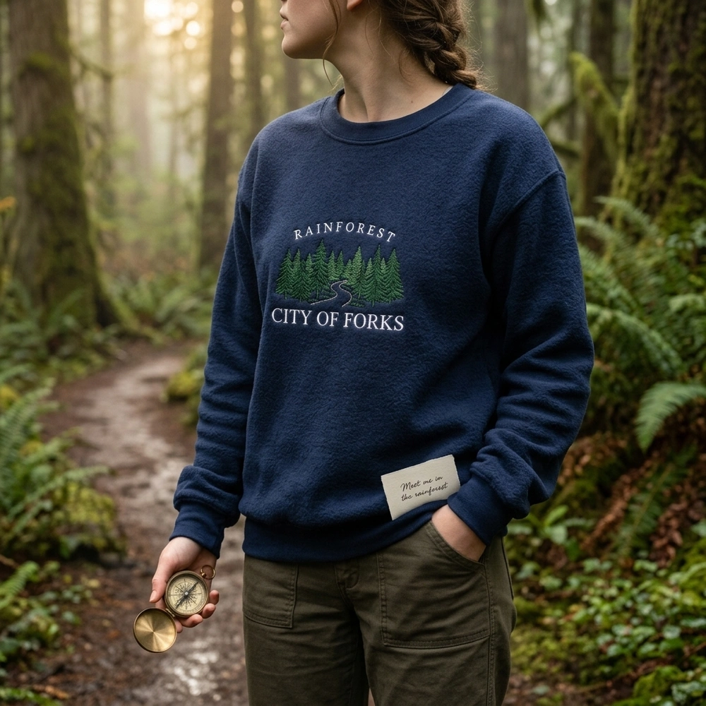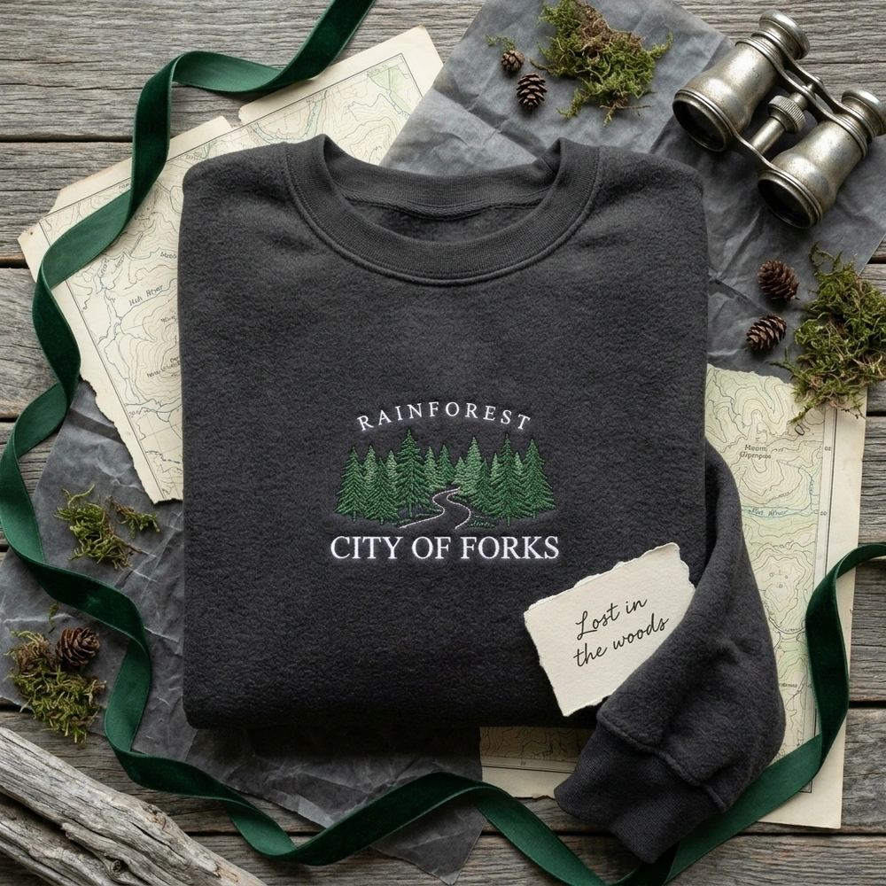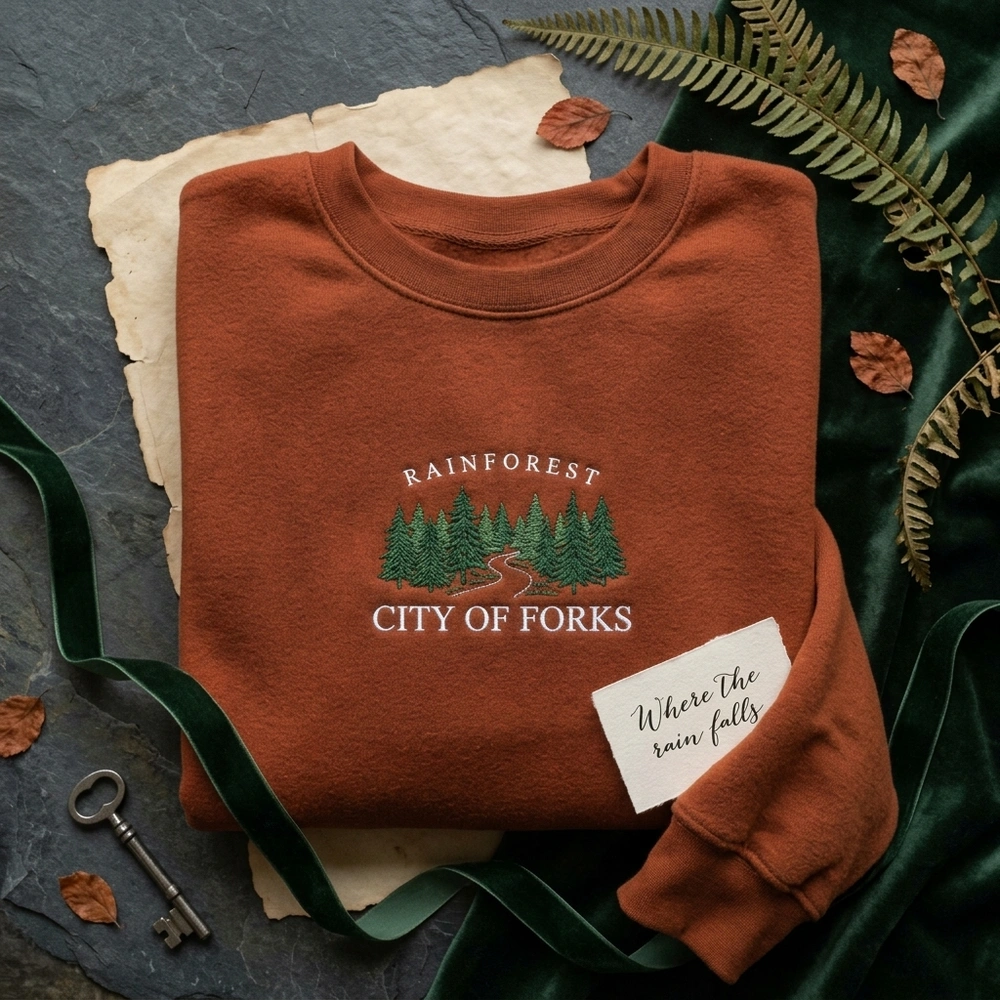 Capture the nostalgic essence of the Olympic Peninsula with this sophisticated piece. Designed for those who appreciate the ‘if you know, you know’ side of the Twilight saga, this sweatshirt blends Pacific Northwest nature vibes with a subtle pop-culture nod. Whether you are wandering through the misty woods of Washington or cozying up with your favorite book, this high-quality garment is the ultimate bookish gift. Browse more embroidered sweatshirts | bookish sweatshirt in our collection to find your next favorite look.