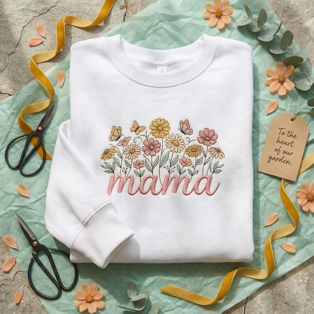 Celebrate the beauty of motherhood with this wearable garden. Whether you are looking for a boho mom gift or a treat for yourself, this piece combines the trendy cottagecore aesthetic with high-quality craftsmanship. It captures the growth and vibrancy of family life through intricate floral artistry. Browse more embroidered sweatshirts | mama sweatshirt in our collection to find your perfect fit.