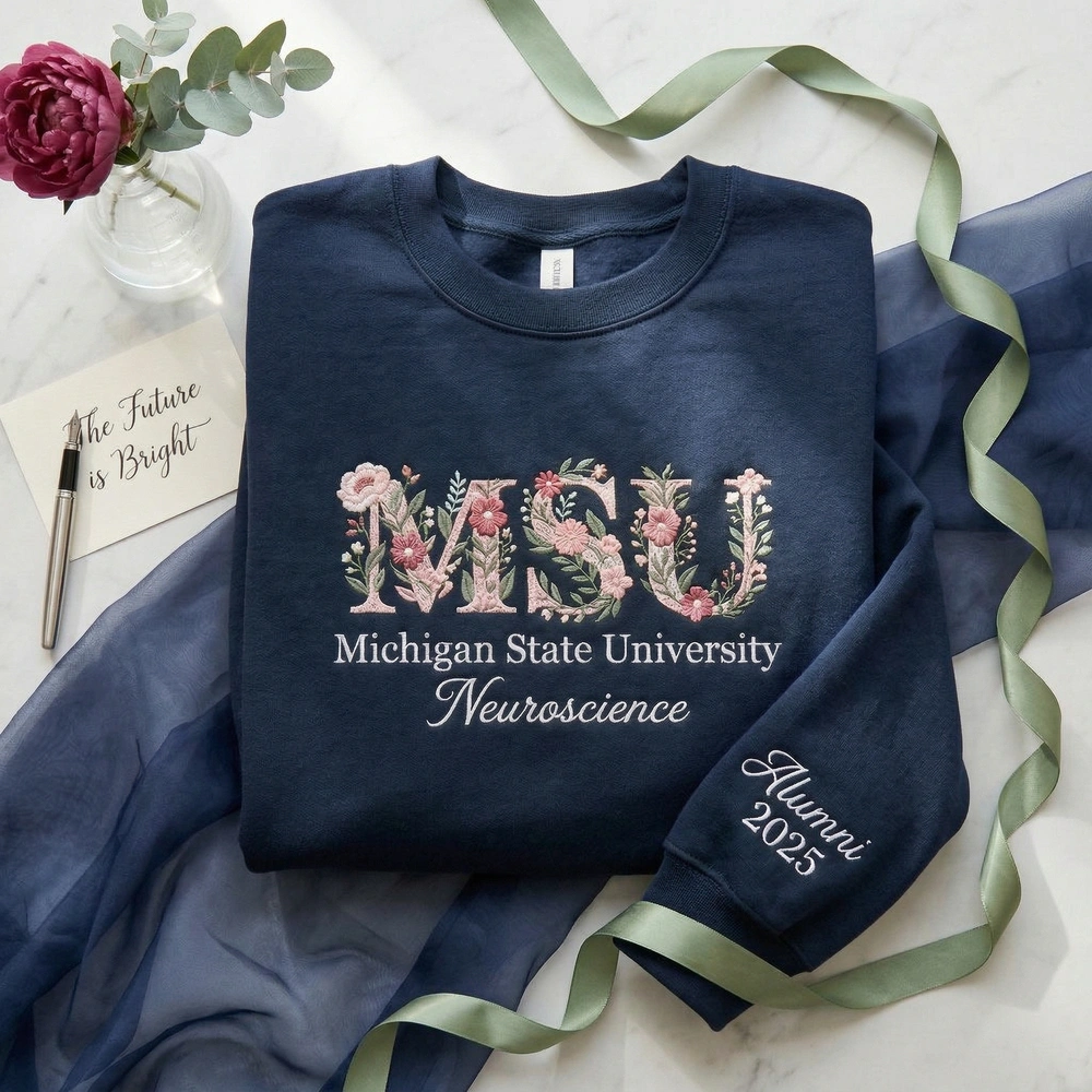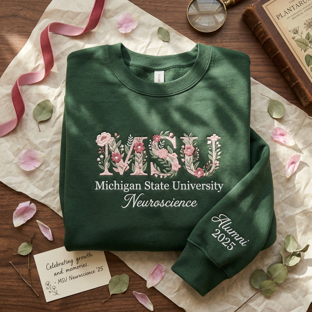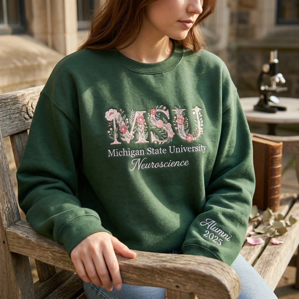 Celebrate a monumental academic achievement with a garment that blends scholarly success with a delicate, aesthetic touch. Designed for those who value both their STEM education and their personal style, this piece transforms standard graduation apparel into a wearable work of art. Whether you are walking the stage in 2025 or looking for a sophisticated way to represent your alma mater, this forest green crewneck offers a premium feel that lasts far beyond graduation day. Browse more embroidered sweatshirts and our specialized nursing sweatshirt collection for more academic-inspired designs.