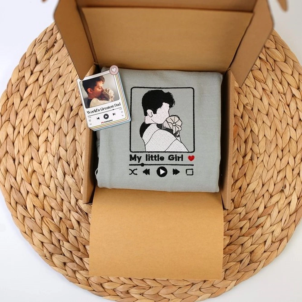 Unlike standard printing that can peel or crack over time, a custom embroidered dad shirt uses high-quality threads woven directly into the fabric. This ensures your personalized dad sweatshirt remains a permanent, textured piece of wearable art, making it one of the most durable portrait gifts for dad available.