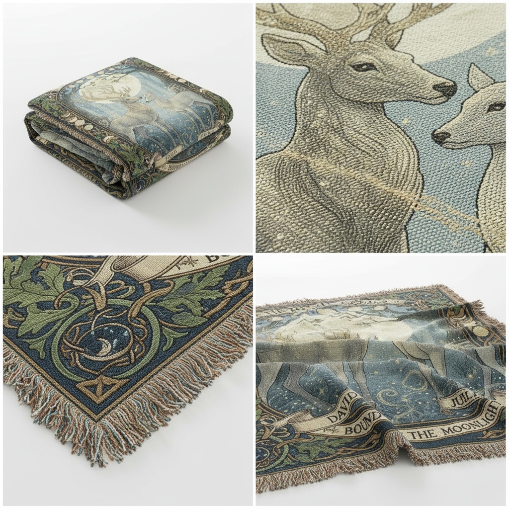 2025 Enchanting Deer Couple Woven Blanket – Personalized Moonlit Throw