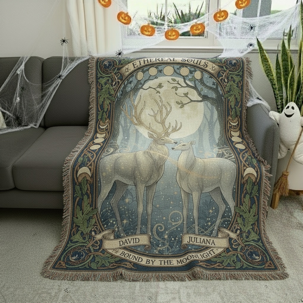 Bring a touch of enchantment into your home with our 2025 Enchanting Deer Couple Woven Blanket, a personalized tapestry that beautifully captures the connection between two kindred souls. Inspired by fantasy art and medieval charm, this Deer Couple Woven Blanket is more than just a cozy throw — it’s a symbol of love, unity, and celestial wonder.