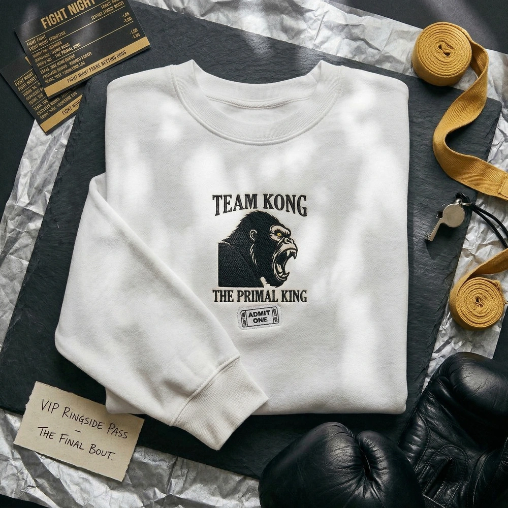 Channel the energy of a high-stakes Las Vegas heavyweight title fight with this premium embroidered apparel. Designed for the monster movie fan who treats every cinematic release like a pay-per-view event, this piece perfectly captures the rivalry and scale of the ultimate kaiju battle. Whether you are heading to the theater or lounging at home, this high-density embroidery ensures you look the part of the undisputed heavyweight titan. Browse more embroidered sweatshirts in our collection to find your favorite cinematic fighter.