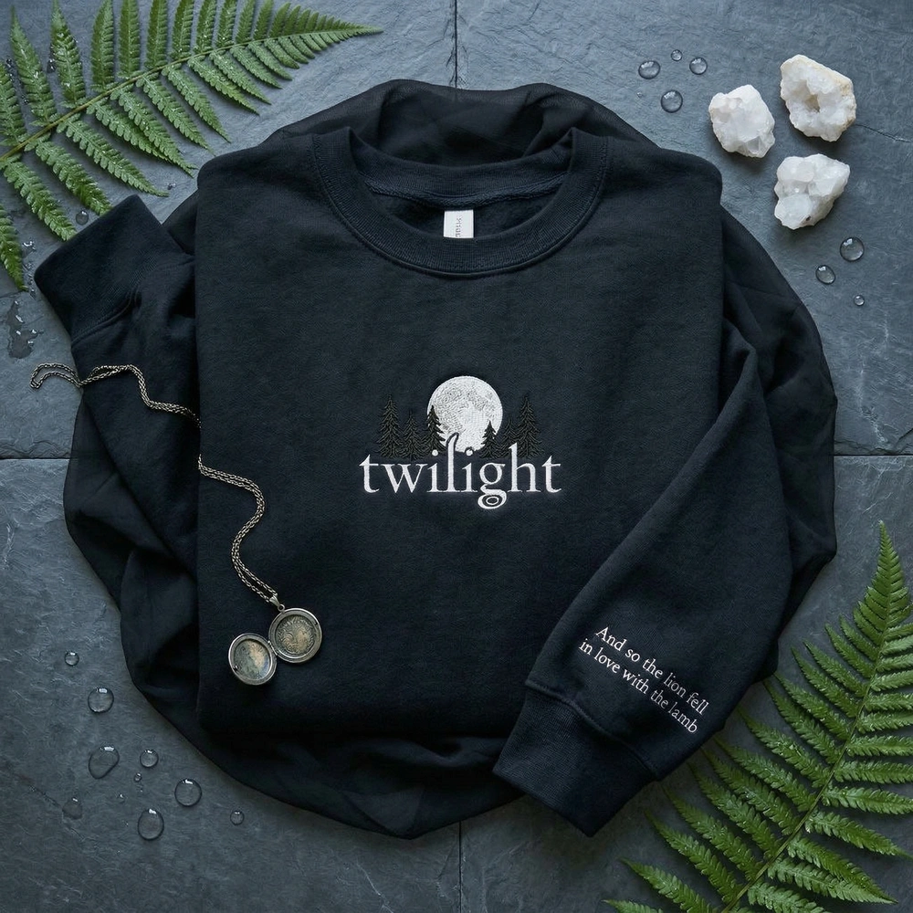 Capture the nostalgic, overcast essence of the Pacific Northwest with this cozy piece of fan apparel. Designed for those who spent their formative years immersed in supernatural romance, this garment taps into the massive 2000s nostalgia trend currently taking over social media. Whether you are revisiting your favorite chapters or heading out for a coffee run in the rain, this piece offers a subtle, aesthetic way to showcase your literary taste. Browse more embroidered sweatshirts in our collection to complete your bookish wardrobe.