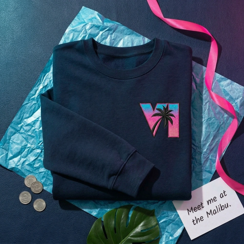 Capture the high-octane energy of the neon-soaked streets with this subtle yet striking piece. Designed for the minimalist gamer who values high-quality streetwear over loud, promotional graphics, this sweatshirt taps into the massive hype surrounding the future of gaming. Whether you are cruising through a retro-wave playlist or looking for a sleek addition to your daily rotation, this garment delivers a nostalgic punch. Browse more embroidered sweatshirts to find your next favorite piece of gaming-inspired apparel.