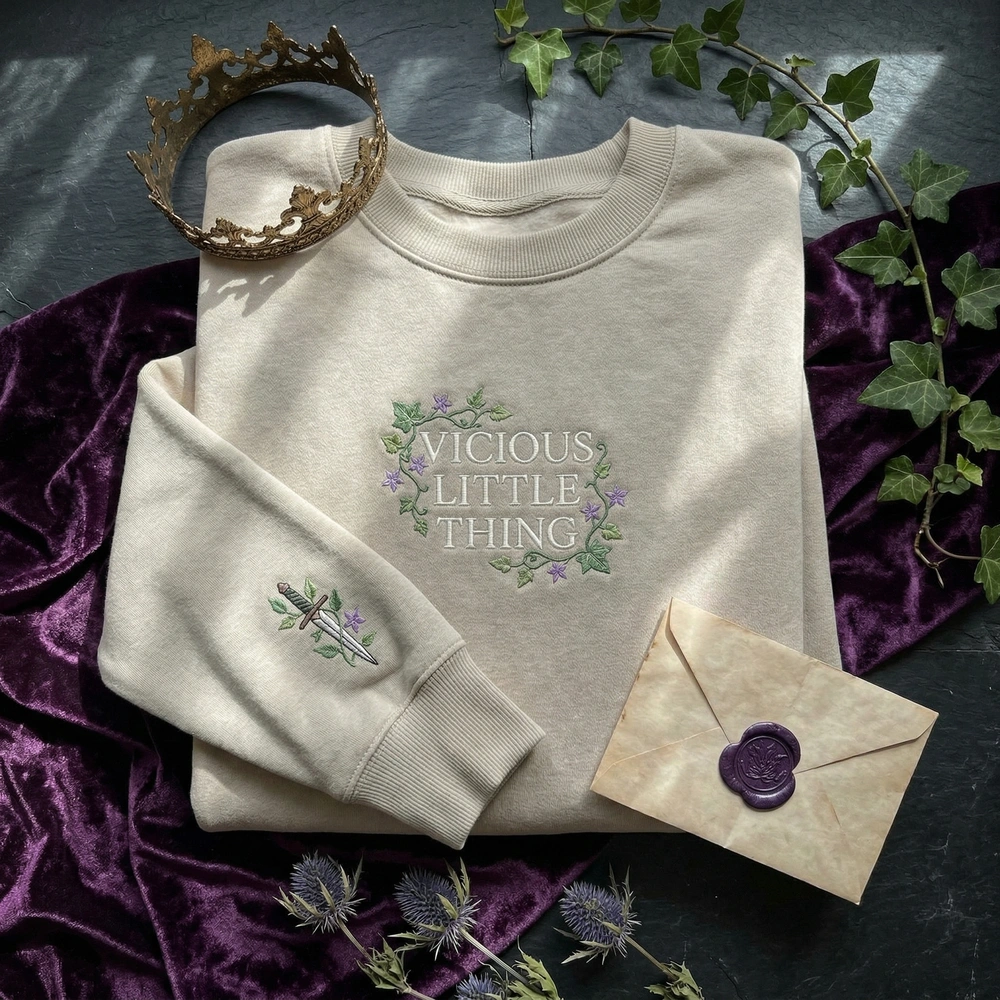 Capture the dark academia and romantasy aesthetic with this high-quality embroidered piece. Perfect for those who love subtle, inside-joke apparel that references their favorite fictional worlds, this design blends dangerous elements with soft floral details. Whether you are curling up with a new release or heading to a bookish meetup, this garment offers the ultimate cozy-yet-stylish look. Browse more embroidered sweatshirts in our collection to find your next obsession.
