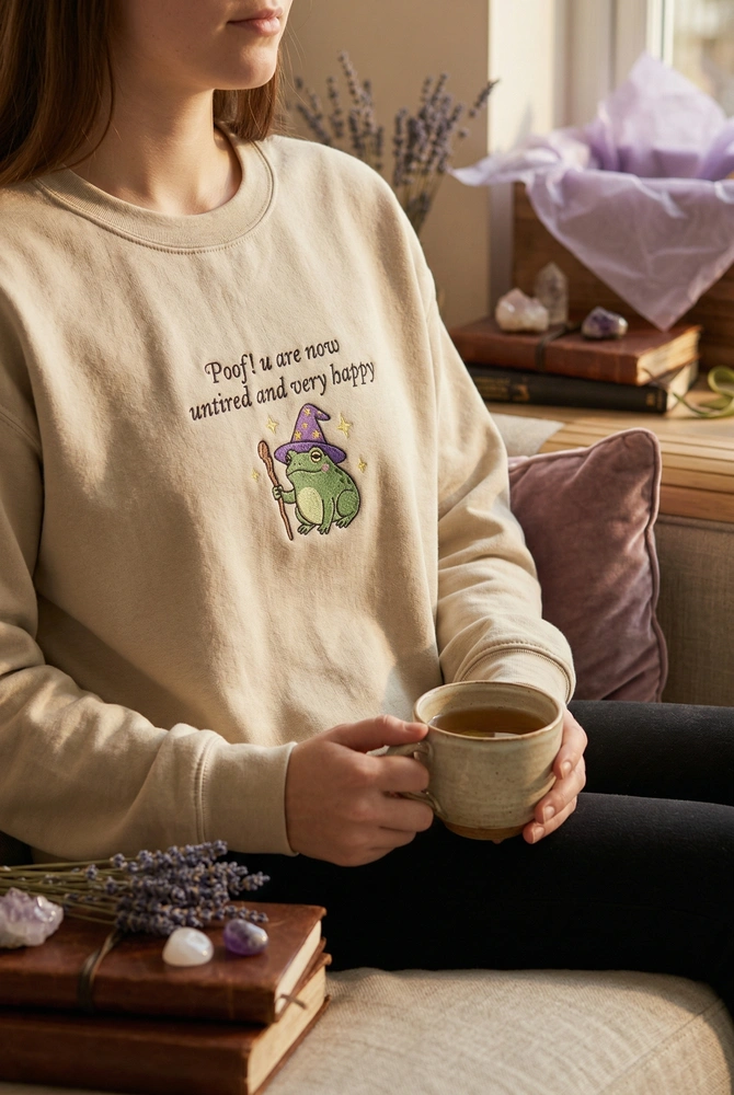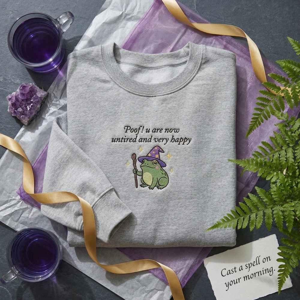 Embrace the ultimate wearable hug with this wholesome meme apparel, perfect for Gen Z, millennials, and the mental health awareness community. Whether you are battling burnout or just need a magical pick-me-up, this design offers a playful escape into the world of frogcore. It’s the ideal choice for those who love embroidered sweatshirts and want to share positive vibes with a funny sweatshirt that speaks to the modern soul.