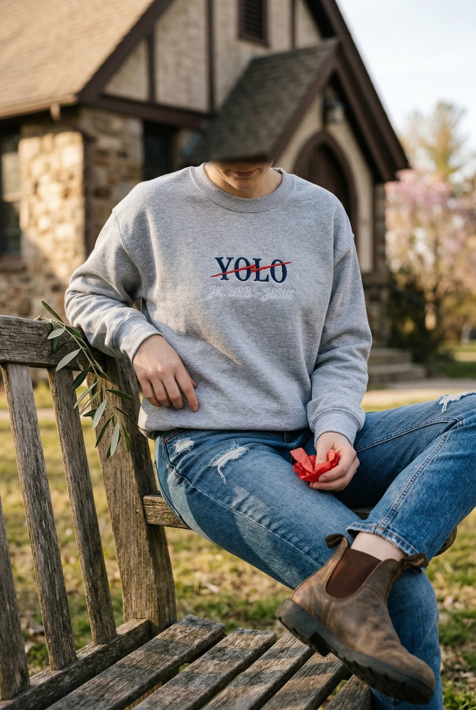 This isn’t your average church sweater. Designed for the Gen Z and Millennial crowd who appreciate a bit of holy humor, our Varsity Strikeout V1 design brings a witty twist to the Easter story. Whether you are heading to a youth group event or just want to spark a conversation at Sunday brunch, this piece is guaranteed to get a laugh. Browse more embroidered sweatshirts to find your next favorite statement piece. Don’t forget, you can add a custom name or short quote to the sleeve for just $5 to make it truly yours.